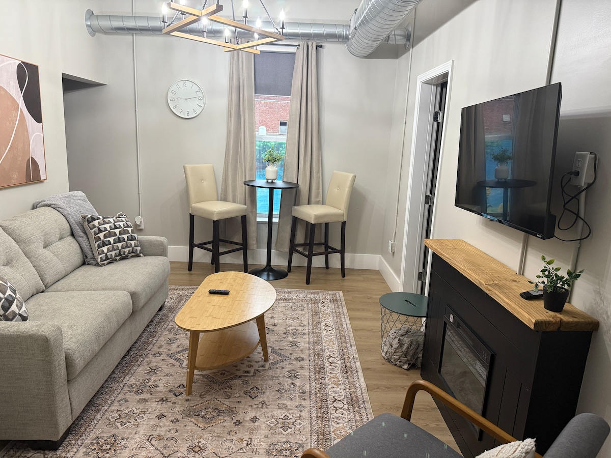 TAITNEOIDH an Lowman Loft go mór leat - foirgneamh stairiúil atá athchóirithe go hálainn i gceartlár Louisburg, Kansas. Níl ann ach mórbhealach díreach 40 míle ó Kansas City. Tá 3,000 troigh chearnach sa lochta. Áiteanna itheacháin, maireachtála agus cistine oscailte agus ceithre sheomra leapa phríobháideacha. Rogha fhoirfe do do chairde, do theaghlaigh, nó do chomhghleacaithe oibre, tá an lochta suite i gcomharsanacht álainn timpeallaithe ag siopaí seandachtaí, fíonlanna áitiúla, agus ionaid bainise ar féidir leat iniúchadh a dhéanamh orthu. Tiomáint ghearr chuig Overland Park nó Olathe.