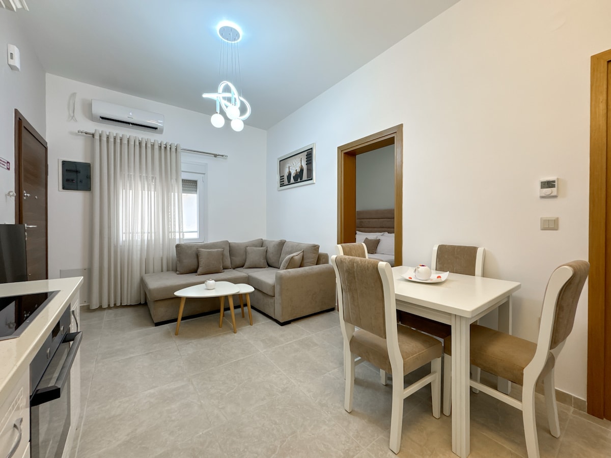 Árasán úrnua, an-sómasach agus compordach (85sqm + balcóin 15sqm), dhá sheomra leapa, ar an gceathrú hurlár (penthouse), foirgneamh nua-aimseartha le páirceáil phríobháideach, ardaitheoir agus idirlíon snáithíní optúla láidir, ach 5 chéim ón bhfarraige. Más maith leat snámh, tá an áit idéalach do do shaoire faighte agat.
