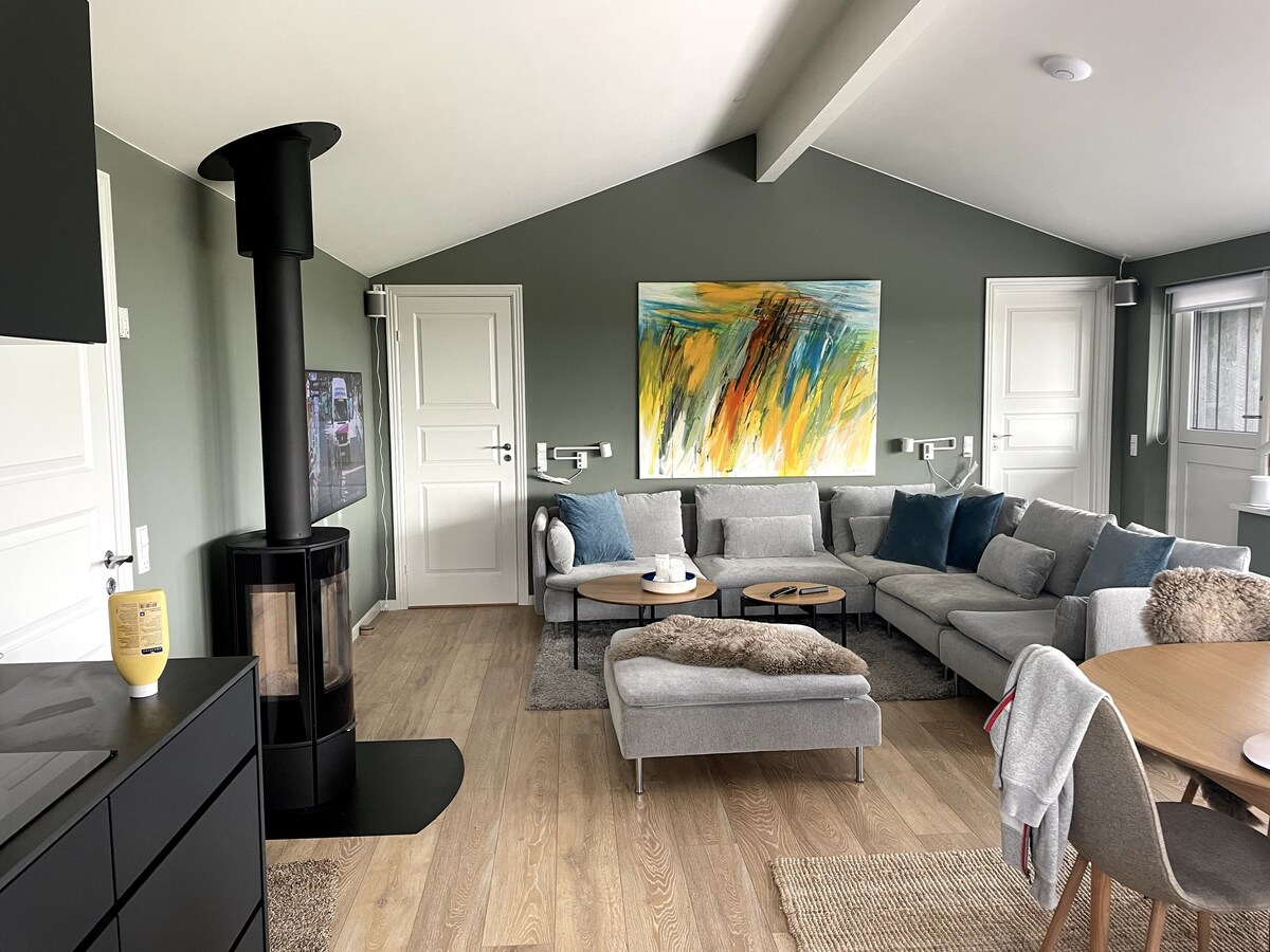 Teachín sa suíomh is fearr i Føns radhairc Tá an teach sa chéad sraith i suíomh an - álainn agus tá sé athchóirithe go hiomlán as an nua. Tá Wi - Fi maith saor in aisce ar fud an tseolta. Cuimsíonn an teach: Seomra suí agus cistin le sorn dóite adhmaid Seomra folctha le cithfholcadán agus meaisín níocháin agus triomadóir. Chomh maith le 2 sheomra. Seomra 1: Leaba bhuinc, leithead breise 120 cm Seomra 2. Leaba 120 cm agus leaba 140 cm Chomh maith le 2 aguisín le 140 cm leaba agus 160 cm leaba faoi seach
