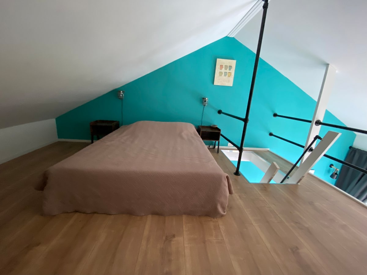 Suite faoin tuath, stiúideo éadrom nua - aimseartha le radharc iontach. Tá leaba de mhéid banríona, seomra folctha agus leithreas ar leith sa stiúideo. Aerchóirithe. Tá sé maisithe le sonraí ealaíne agus seanré nua - aimseartha. Ón stiúideo beidh tú ag seasamh amach ar do ardán príobháideach. Cuireann stiúideo caife agus tae ar fáil saor in aisce chomh maith le Wi - Fi saor in aisce. Tá bricfeasta ar fáil ach é a iarraidh (€ 12,50 an duine). Suite 25 nóiméad ó Amstardam. Tabhair faoi deara gur fearr teacht ar an stiúideo sa charr.