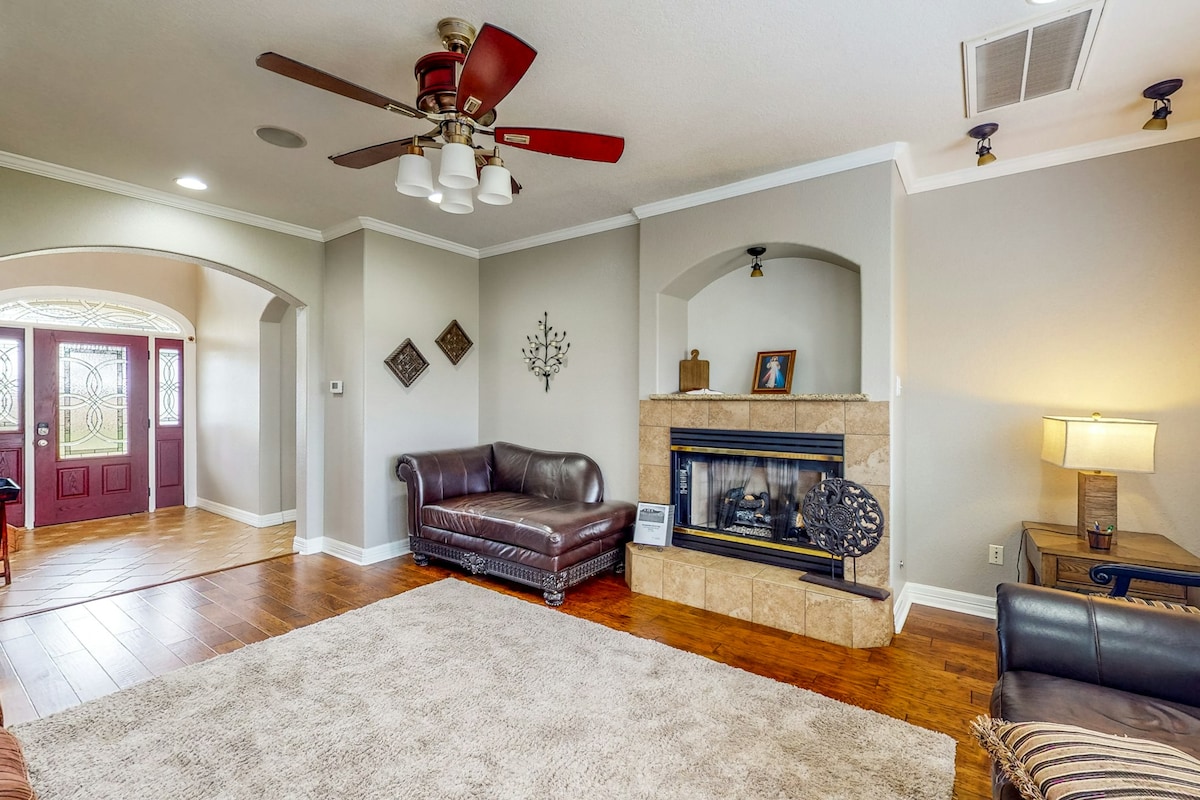 Relax & refresh at this private yet centrally located family friendly home. Just a few blocks from historic downtown, yet off the beaten path with plenty of outdoor space for the family including patio furniture, fire pit, and BBQ pit. Indoors enjoy relaxing amenities for unwinding like a big deep soak tub! Neighborhood splash park one block away for those hot Texas days! Matagorda beach just 28 miles away. Shopping, dining, movies, bowling, museums… just minutes away! Come enjoy!