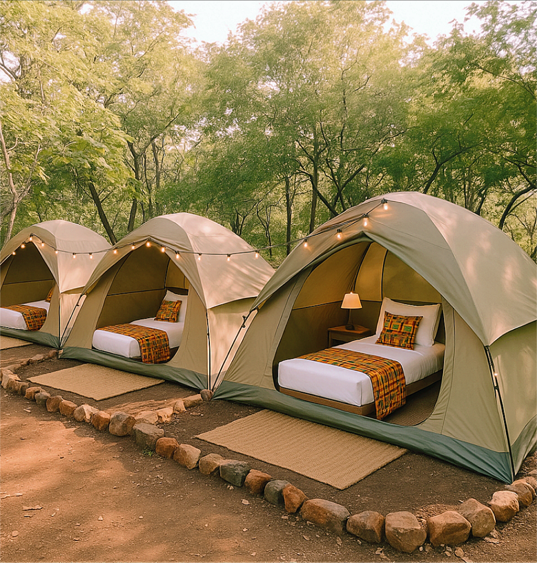 Unforgettable escape by lake. Camping Tent Stay in Zimbabwe Comfortable tent in a secure nature reserve 59 km from Harare and 12 mins from Norton. Includes tent, full bedding, meals, WiFi, electricity, braai area, firepit and forest + lake views. Ideal for couples, solo travelers and nature lovers seeking premium camping, Zimbabwe outdoor escapes, Harare weekend getaways and elevated bush stays. Robes, slippers, drinks & outdoor film screening included plus board/yard games.
