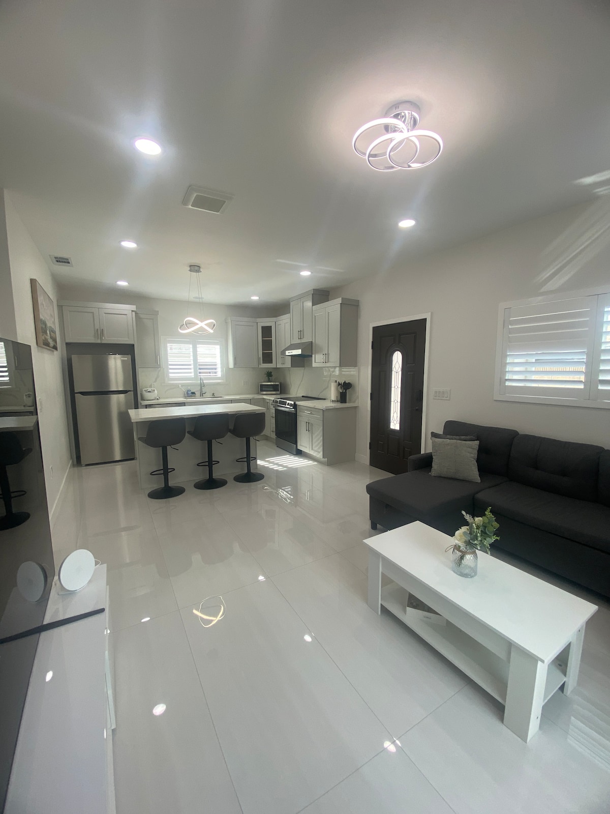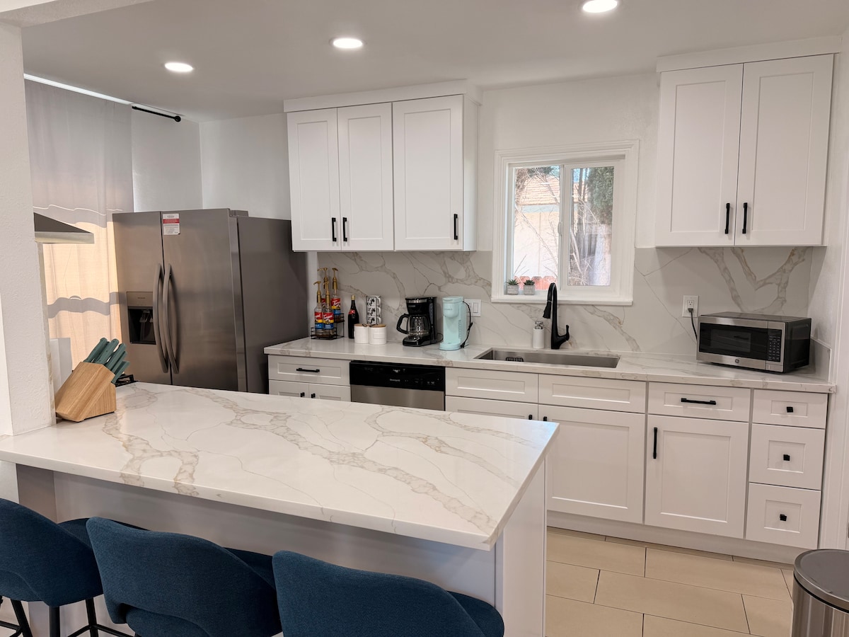Tógtha ón talamh suas i dteach 1BR/1BA le gach feisteas nua. 15 -20 nóiméad ar shiúl go Disneyland, Knotts Berry Farm, Anaheim Convention Center, Staid Angel, aerfort John Wayne, Huntington Beach, Newport Beach, Páirc Chearnóg Mhíle agus níos lú ná 5 nóiméad go dtí Little Saigon agus Koreatown. Go hiontach do lánúineacha, do theaghlaigh le páistí faoi bhun 5 bliana d'aois, do theaghlaigh bheaga, do thaistealaithe gnó!