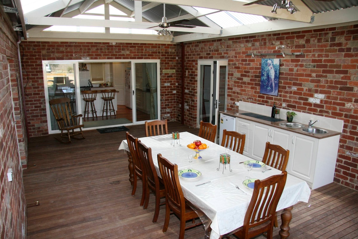 Suíomh lárnach suaimhneach ar bhóthar gan dul tríd agus suite go díreach os coinne páirce áille ina bhfuil limistéir mhóra féir oscailte. Athchóiríodh an teach chun a dhraíocht i lár an chéid a chaomhnú agus tá gnéithe nua - aimseartha san áireamh Aircon nua córais scoilte i ngach seomra leapa & áit ina bhfuil cistin. Teilifís chliste 55 orlach, barr cócaireachta, oigheann, cuisneoir, micreathonnán, meaisín níocháin, meaisín níocháin mias, meaisín caife & feistis. Wi - Fi gan teorainn. Siúlóid éasca chuig CBD, Murray River, turasóireacht, linn snámha, leabharlann, ospidéil & galf
