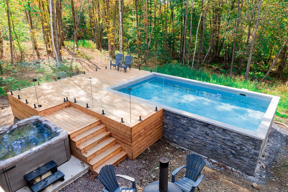 TEACH FÍOR - LOGÁLA! - Pobal geataithe mór le rá i gcroílár Laurentian's. -18 nóiméad ó Saint - Saveur's Ski, Asraonta Siopadóireachta, Bialanna, Páirc Uisce. - Rochtain ar ionad caitheamh aimsire Fiddler Lake Resort le linnte snámha laistigh agus lasmuigh, rochtain ar loch le cadhcanna, clós súgartha agus go leor eile. - Tinteáin faoi dhíon/Lasmuigh. - Spa chun súmáil isteach agus taitneamh a bhaint as spéir lán réaltaí. - Ag cur timpeall ar aghaidh chuig Whitetail Deers. * níl aon adhmad tine lasmuigh curtha AR fáil * níl aon pháirtithe LE DO thoil