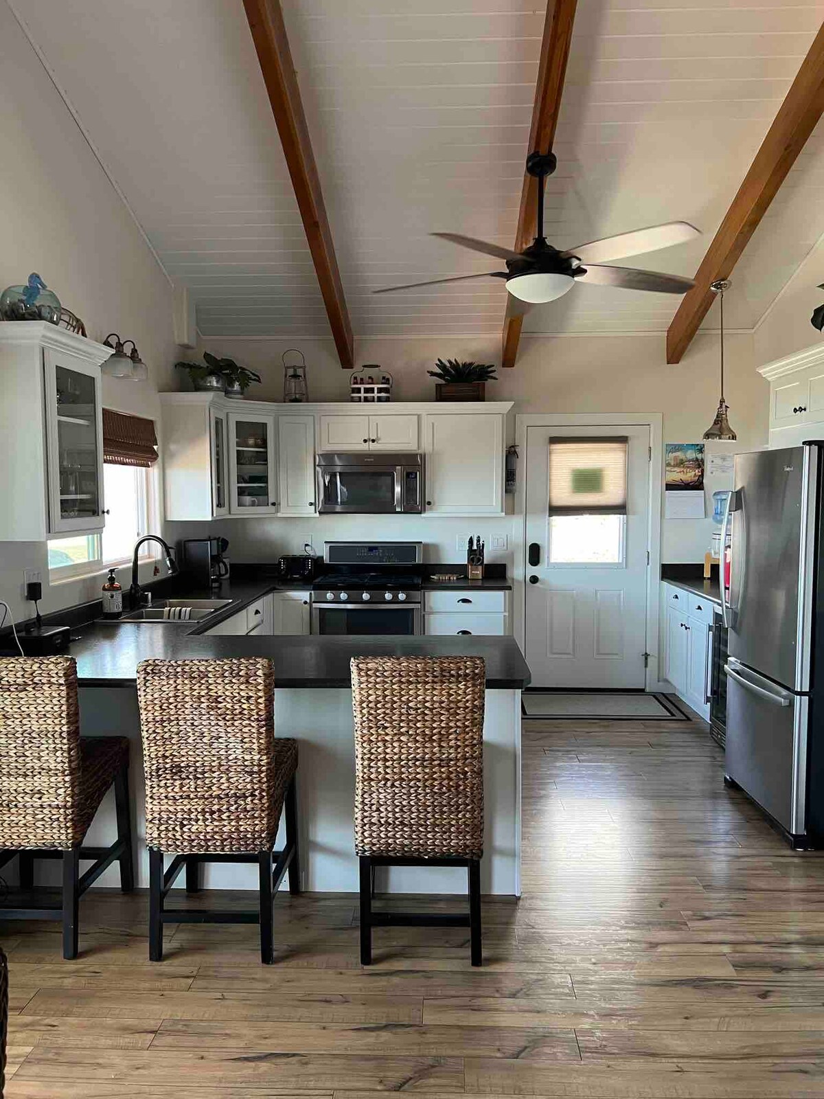 Wake up to some of the best ocean views in the area from this peaceful, modern studio. Guests often say that one night is just not enough to truly enjoy this special oasis. Ideal for those seeking serenity away from the crowds, the space offers a KING SIZE bed, AIR CONDITIONING, convertible sofa for extra guest & private washer/dryer. A well-equipped indoor/outdoor kitchenette. Enjoy a covered lanai, gas fire pit, gas grill, fast Wi-Fi, smart TV, beach gear, essentials for a relaxed stay.