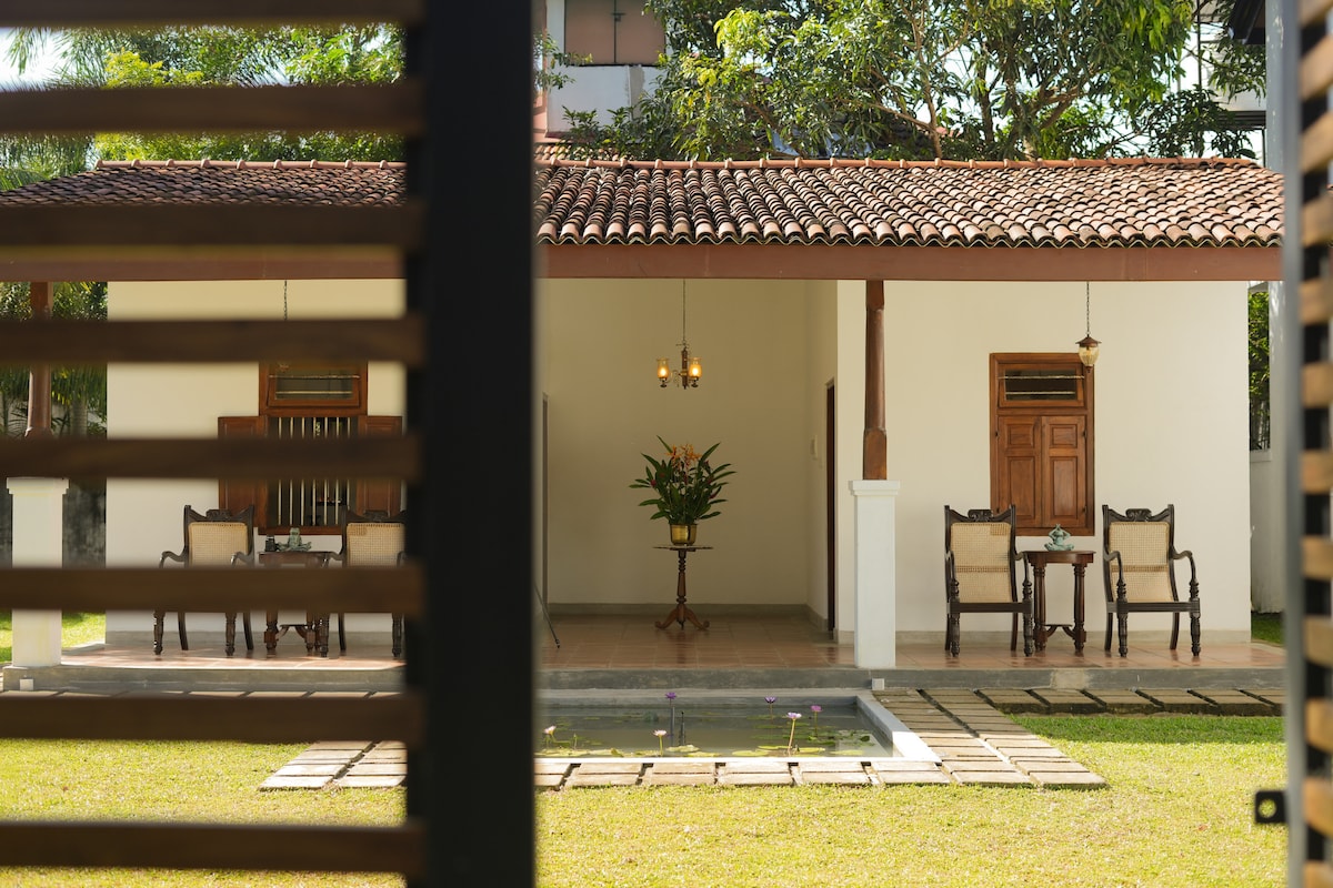 Tá an Villa Oidhreachta suite ar réadmhaoin phríobháideach 80perch atá daingnithe ag balla ard agus tá bealach isteach geataithe ann díreach 4 km chuig Aerfort Idirnáisiúnta Colombo - Bandaranaike; níl ach 2 km chuig an trá, bainc, ollmhargaí, agus nithe is díol spéise amhail teampaill Bhúdaíocha, séipéil Phortaingéalacha agus canálacha na hÍsiltíre; 150m chuig stáisiún iarnróid Kurana. Tá an áit go hiontach do theaghlaigh, agus d'aon duine ar mian leo a scíth a ligean roimh eitilt nó ina diaidh nó chun iniúchadh a dhéanamh ar cheantar Negombo. Suite i ngairdín trópaiceach, tá sé go leor an ósais de calma.