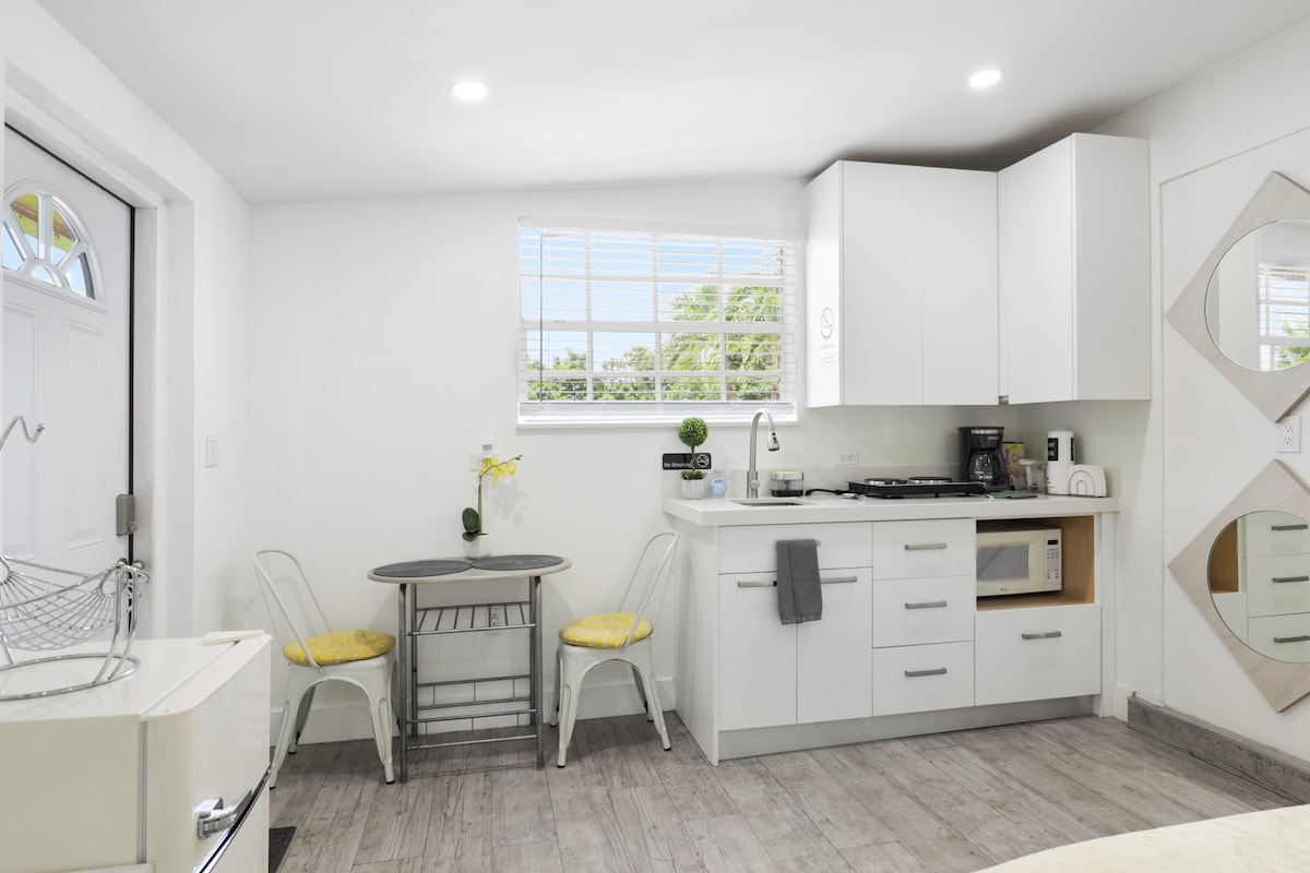 Fáilte go dtí ár lóistín príobháideach in Pembroke Pines, an chathair is sábháilte sa cheantar. Faigh blaiseadh d'oíche shuaimhneach ar an leaba rímhéide agus déan athnuachan sa seomra folctha suaimhneach nádúrtha. Tá an chistin iomlán foirfe chun do bhéilí a chócaráil, agus is féidir leat scíth a ligean ar an futon/leaba os comhair an 55" Roku TV le Netflix Prime. Bain sult as aer úr sa limistéar príobháideach lasmuigh. Foirfe do thaistealaithe gnó agus fóillíochta atá ag lorg compoird agus príobháideachta, cuirimid níochán saor in aisce ar fáil le haghaidh fanacht os cionn 3 oícheanta.,,