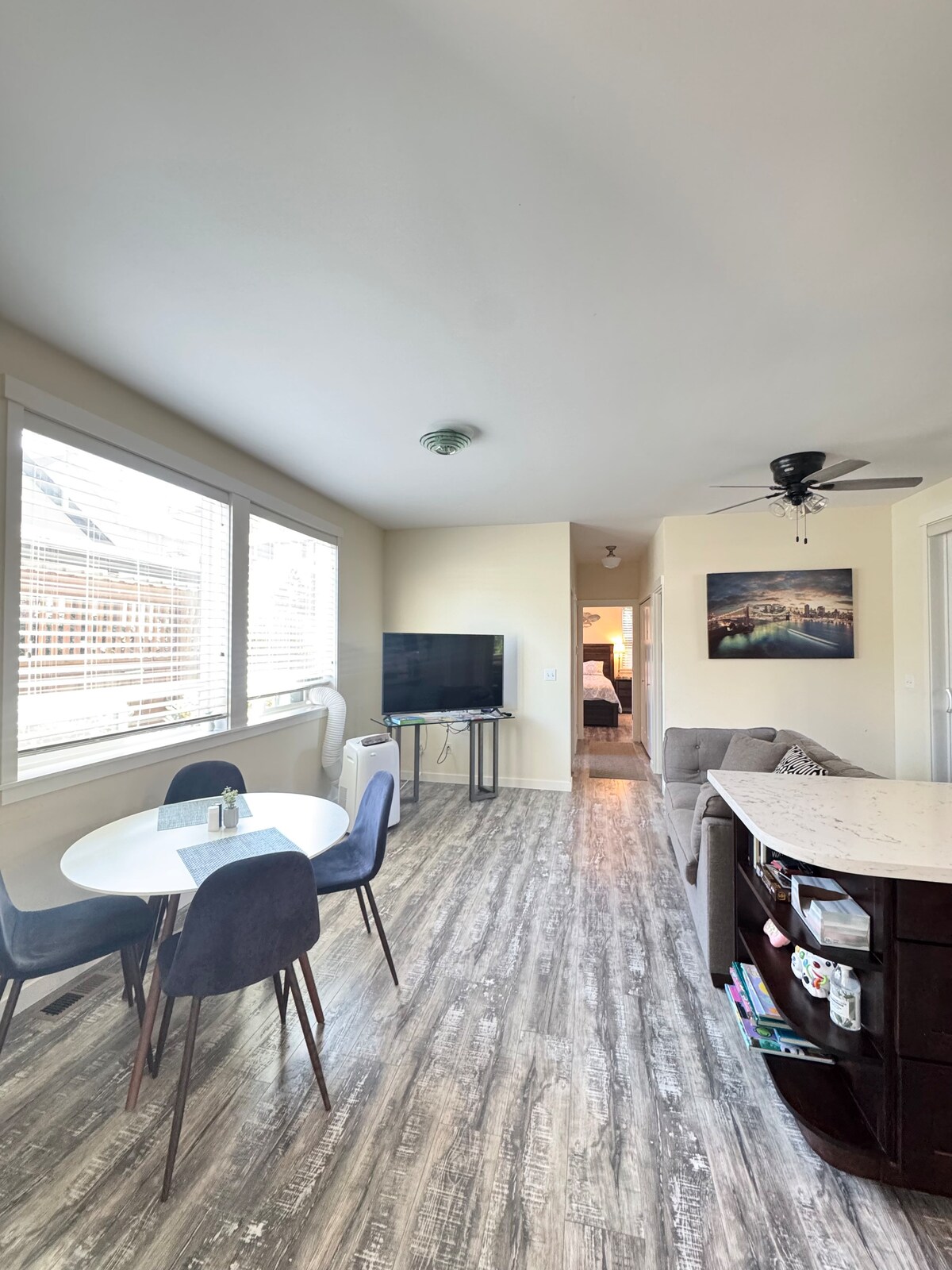 Teachín nua - aimseartha tí feirme ar Loch Sammamish -2 leaba / 2 sheomra folctha le teallach A/C agus gáis. Tá compordóirí agus piliúir le feiceáil sa dá sheomra leapa. Bain sult as urláir chrua - adhmaid, cistin atá feistithe go maith le fearais nua, meaisín níocháin/triomadóir, bia do 6, tolg codlata, teilifíseán 55”agus beár caife. Lig do scíth le bia radhairc locha, cadhcáil ar an gcladach, nó déan iniúchadh ar Chonair Loch Sammamish díreach taobh amuigh de do dhoras. Fáilte roimh mhadraí dea - iompartha!