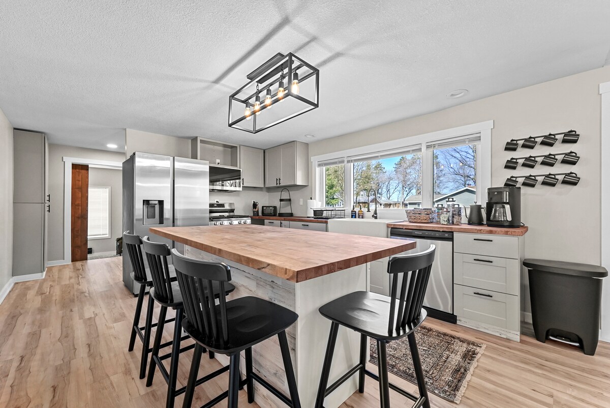 Ní bhfaighidh tú suíomh níos fearr más mian leat a bheith i gceartlár gach rud! Tá an teachín folctha 3 sheomra leapa nua - athchóirithe (chomh maith le seomra bunc), 1 -1/2 teachín folctha i gceartlár Chathair Loch an bhaile agus tá sé faoi fhad siúil ó gach rud... bialanna, tránna, uachtar reoite, páirceanna, siopaí agus go leor eile! Is loch soiléir, éadomhain, ghainmheach é Loch Missaukee ina bhfuil os cionn 1,800 acra de ghníomhaíochtaí uile - spóirt. Tá iascaireacht den scoth ann ó cheann ceann na bliana, ag snámh agus ag bádóireacht!