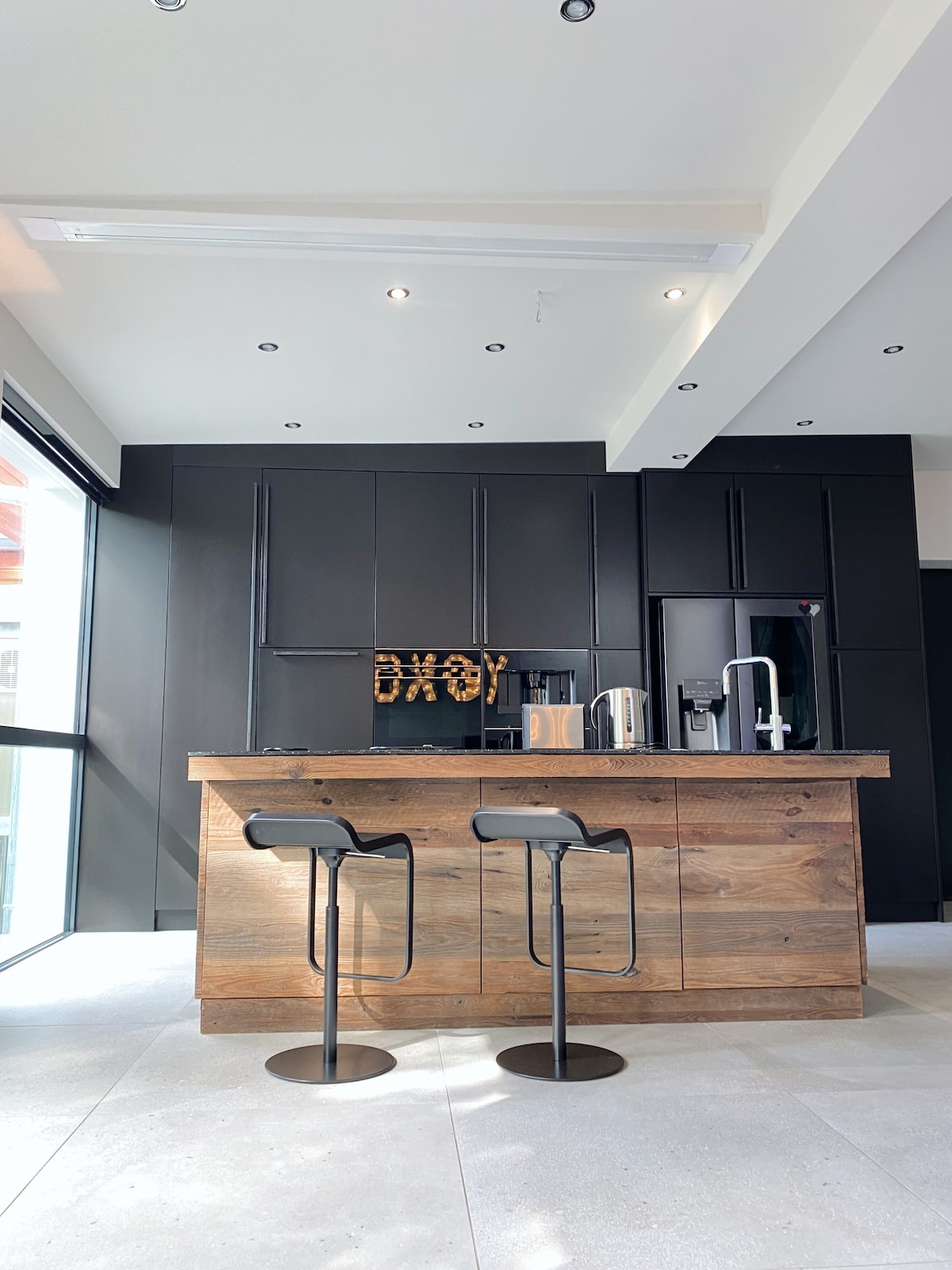 Tá ár n - árasán ar an díon éadrom lena bhíomaí adhmaid 150 bliain d'aois i lár comharsanachta álainn. Tagann sé le cistin bheag ach ghalánta agus seomra folctha sómasach, atá feistithe le cithfholcadán báistí agus sabhna Fionlannach. cuirimid Netflix, teilifís chábla agus Idirlíon an - tapa ar fáil. Beidh d'fhanacht linn go hiomlán neodrach ó thaobh carbóin de. Óstálann an t - árasán suas le triúr daoine fásta nó beirt daoine fásta a bhfuil páistí acu.