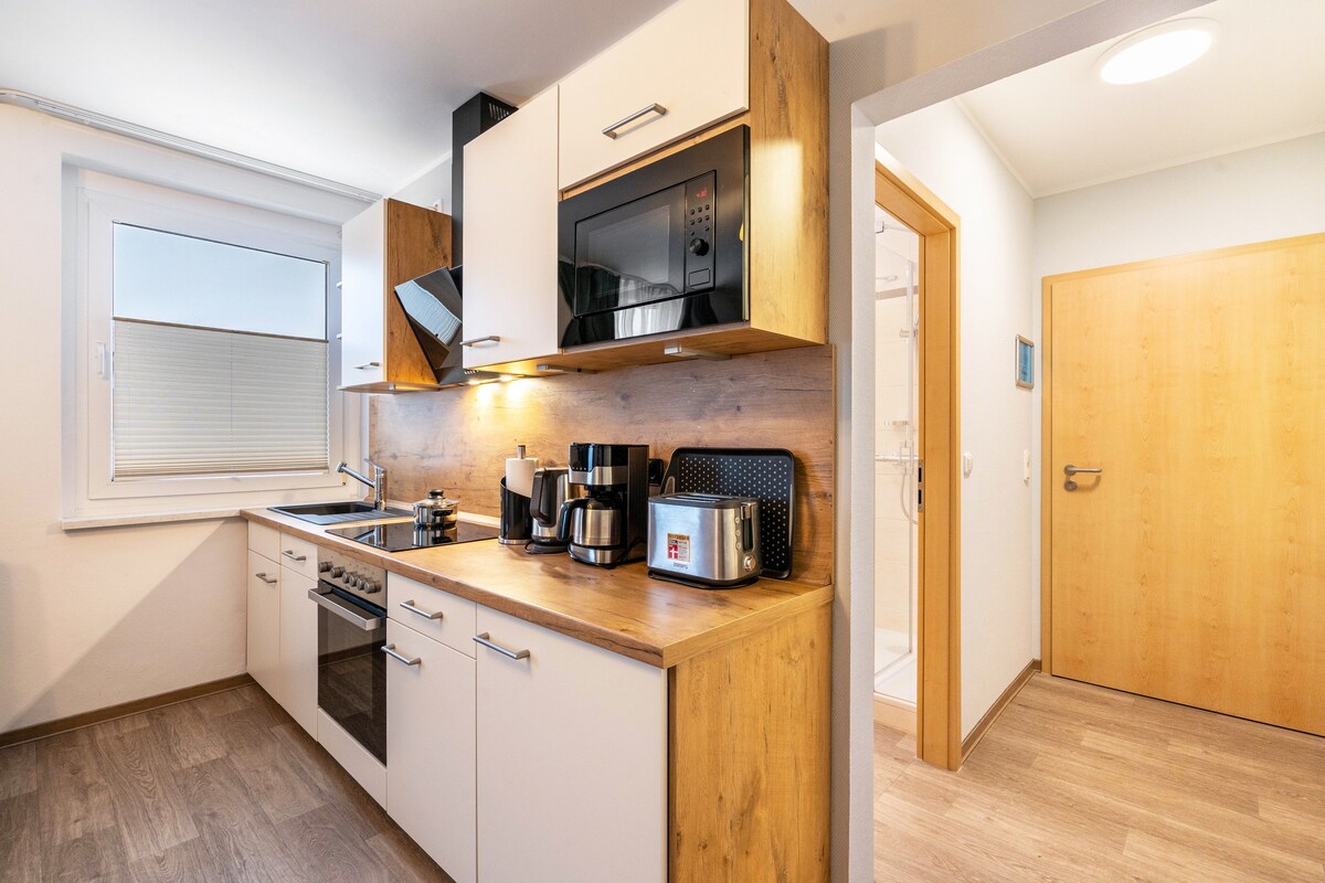 The apartment is 46 m² and accommodates up to 4 guests. You will find 1 bedroom with a double bed, a large mirrored wardrobe, and a chest of drawers. The living area features two comfortable armchairs and a flat-screen TV; up to two guests can sleep here. The kitchenette is equipped with a microwave, fridge, dishwasher, kettle, and coffee maker. The bathroom has a shower. Wi-Fi is available free of charge. Enjoy a pleasant stay with everything you need for a relaxing visit.