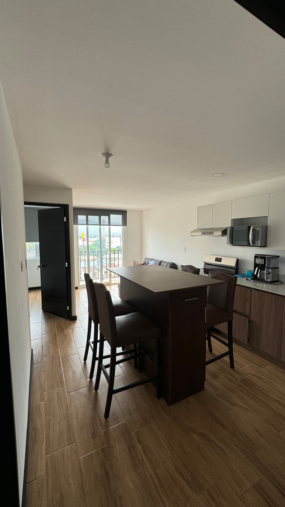Disfruta de la comodidad de este alojamiento tranquilo y céntrico. Cerca de principales centros comerciales , restaurantes y aeropuerto, ubicado en exclusivo condominio con doble garita de seguridad . Cuenta con vista al bosque, cocina equipada, área social, juegos para niños, cancha de básquet bol, churrasquera, área de Pergola terraza y parqueos. Ubicado en zona 1 de mixco