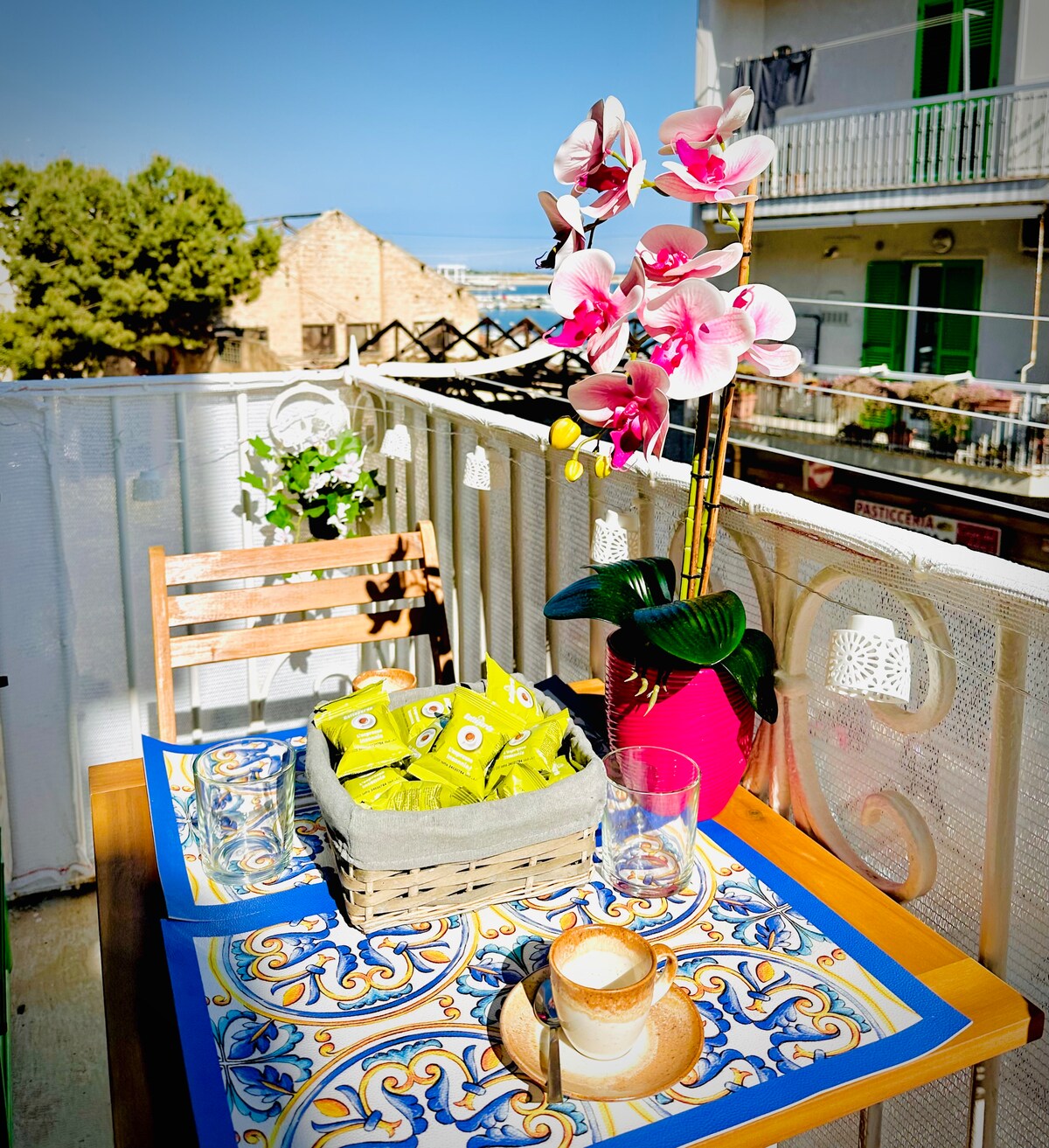 I gcroílár lár ársa Molfetta. In aice leis an Torrione Passari, túr cosanta ársa, as a bhfuil chun sásamh a bhaint as radharc iontach! 50 méadar ó Cala diSant'Andrea, trá bheag ghainmheach, faoi thúir na hardeaglaise. 100 méadar ón Duomo, Piazzaůio, atá lán de chlubanna, beáir agus bialanna. Aitheantas ar struchtúr CIS Puglia Réigiún: BA07202991000030386