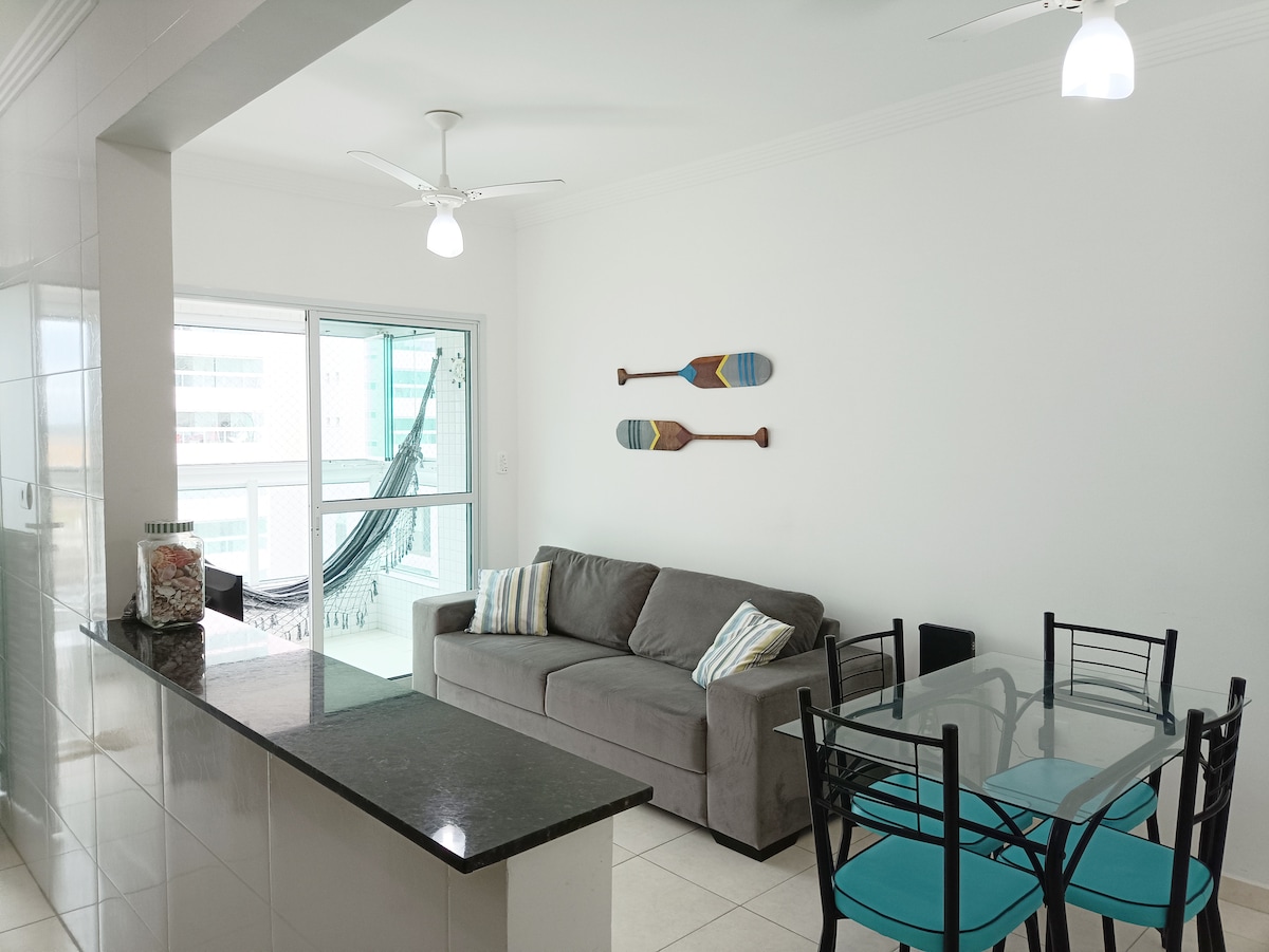 Bain sult as le do theaghlach sa timpeallacht thaitneamhach seo agus radharc iontach ar an bhfarraige. Lonnaithe thart ar 80 km ó São Paulo, tá dhá sheomra folctha sa spás seo, svuít amháin. Tá dhá sheomra leapa ann, le radharc na farraige, chomh maith le balcóin álainn gourmet le beárbaiciú. Tá teilifíseáin ann sa seomra suí agus sa dá sheomra leapa, agus sa seomra suí tá sé Cliste. Tá Wi - Fi agus spás páirceála amháin ann freisin.