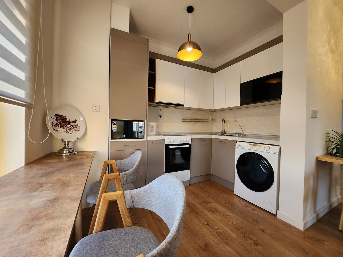 Tá ár n - árasán stiúideo suite i gceartlár na cathrach, in aice le siopa ilrannach an stáit. Compordach, feistithe go hiomlán, cuirtear Wi - Fi ar fáil agus tá rochtain éasca ar iompar poiblí, malls siopadóireachta in aice láimhe.
