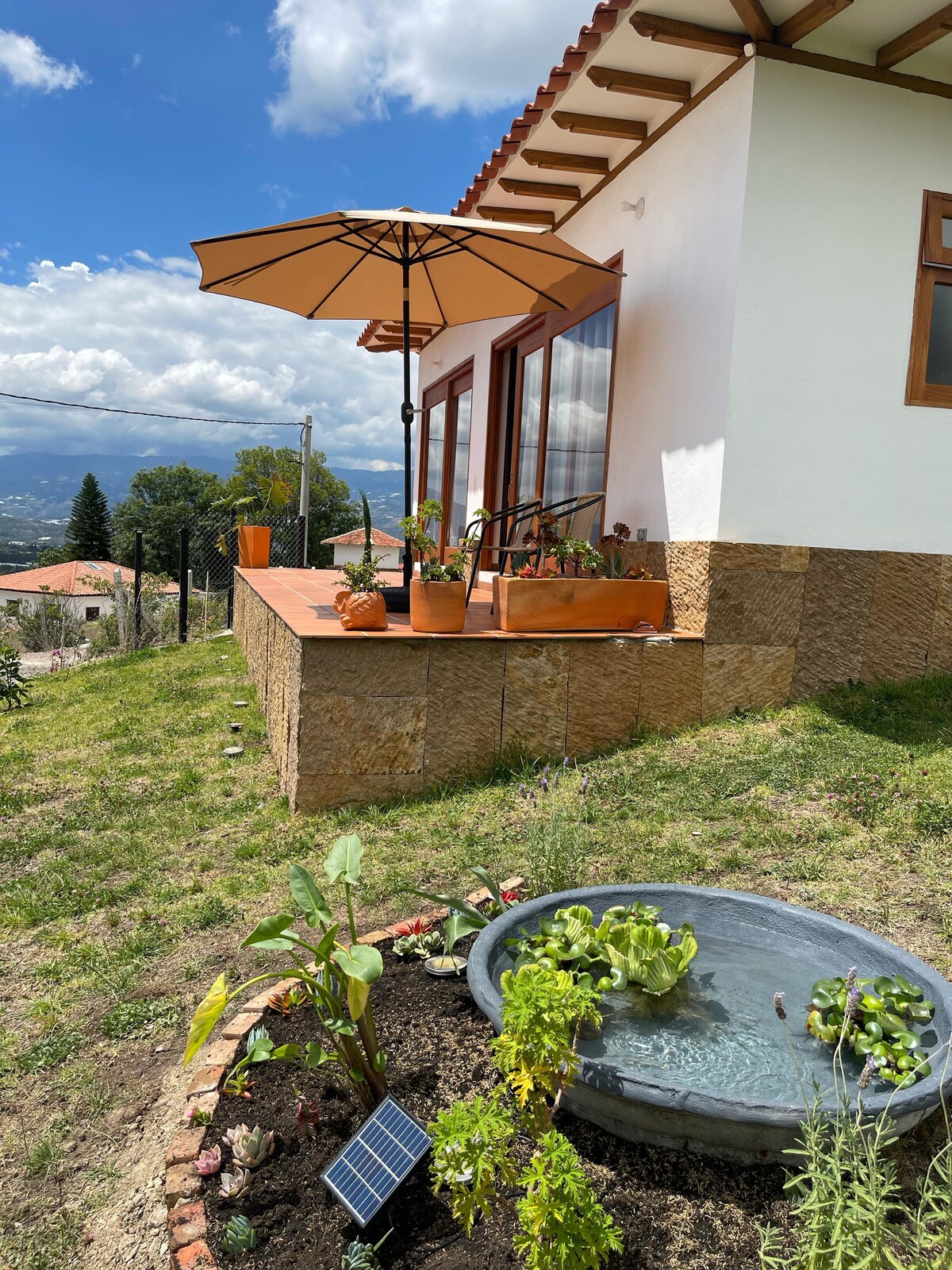 Teach tuaithe álainn, 5 nóiméad ó Villa de Leyva atá feistithe go hiomlán, meaisín níocháin , triomadóir , triomadóir . Foirfe le haghaidh tréimhsí fanachta fada, trí sheomra leapa ina bhfuil seomra folctha príobháideach, seomra folctha sóisialta, seomra suí, seomra bia, cistin, tobán gairdín te (gineann a úsáid costas breise) wiffi, páirceáil phríobháideach (5 ). Le gach compord in óstán 5⭐️⭐️⭐️⭐️⭐️. Áit iontach don chianobair 🧑💻nó do laethanta saoire teaghlaigh. Ardán ag breathnú amach ar an sliabh agus Villa de Leyva .