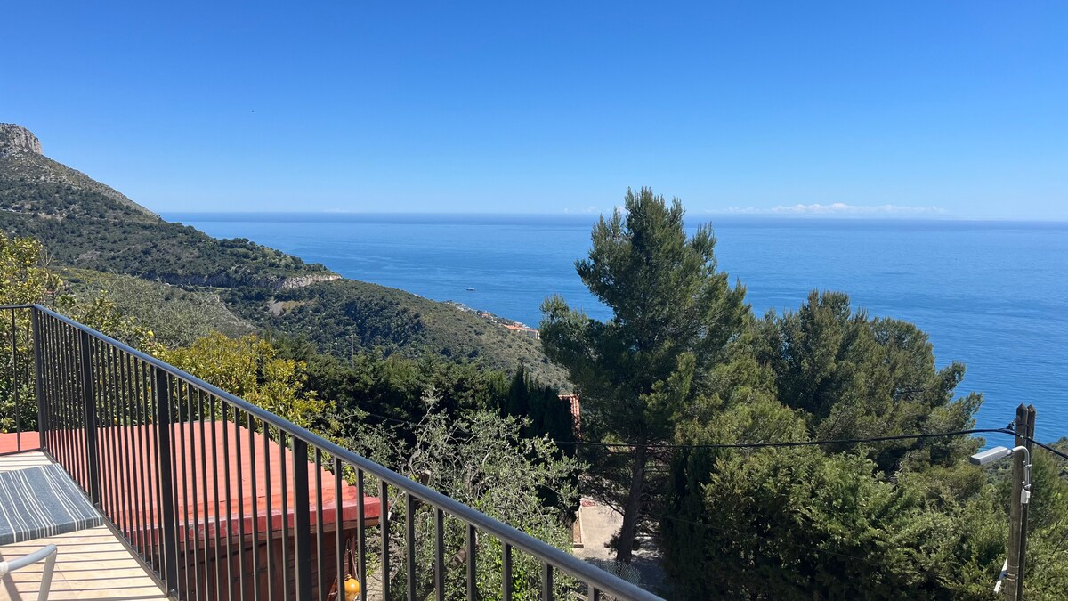 Árasán ina bhfuil ardán mór agus radharc na farraige thar Nice