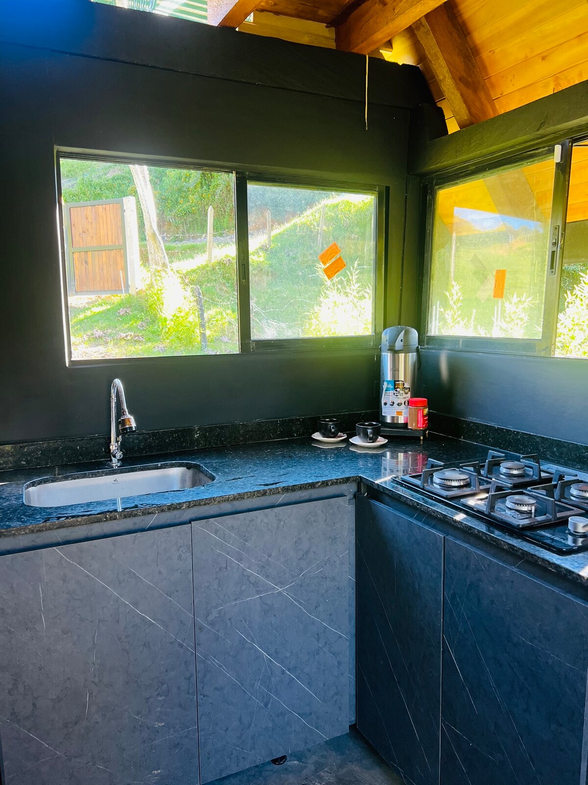 Lig do scíth inár gcábán tuathúil atá oiriúnach le haghaidh tréimhsí fanachta gearra agus fada ina bhfuil gach compord sa bhaile leis an difríocht go mbeidh tú timpeallaithe ag an dúlra agus go bhfeicfidh tú réaltaí lámhaigh. is féidir leat taitneamh a bhaint as an tobán te lasmuigh le suathaireacht mboilgeog, mogalra catamaran agus teallach , tá an chistin ag breathnú amach ar an Ruiz sneachta agus ar na sléibhte áille. tá radhairc iontacha spéir, sléibhte agus Ruiz sneachta san alcove. tá an seomra folctha lasmuigh in guadua agus in uisce te.