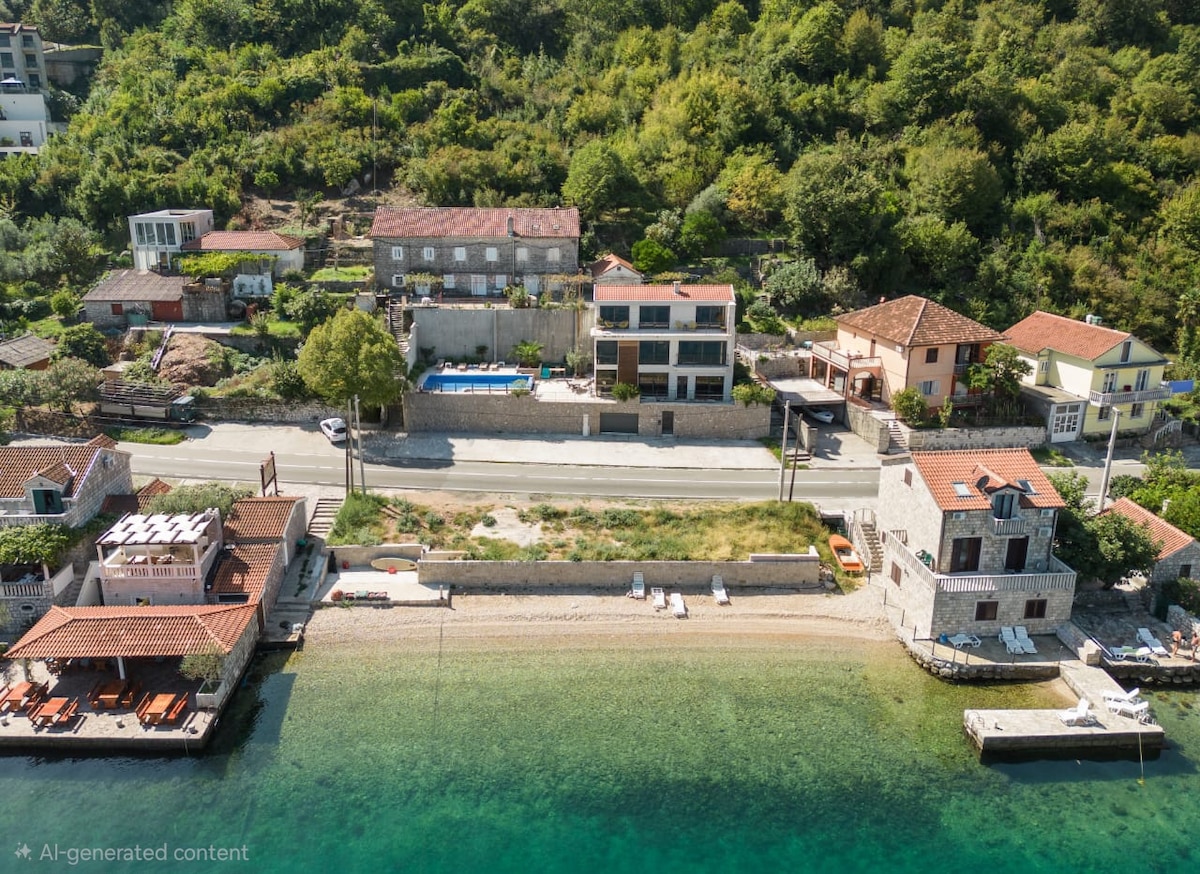 Set directly on the seafront in the peaceful coastal village of Kostanjica, Villa Viborg offers a rare combination of privacy, space, and breathtaking views in one of Montenegro's most spectacular locations. Overlooking the stunning Kotor Bay, the villa enjoys uninterrupted panoramas of the historic town of Perast and the iconic island of Our Lady of the Rocks, creating an exceptional setting for a relaxing and memorable stay.
