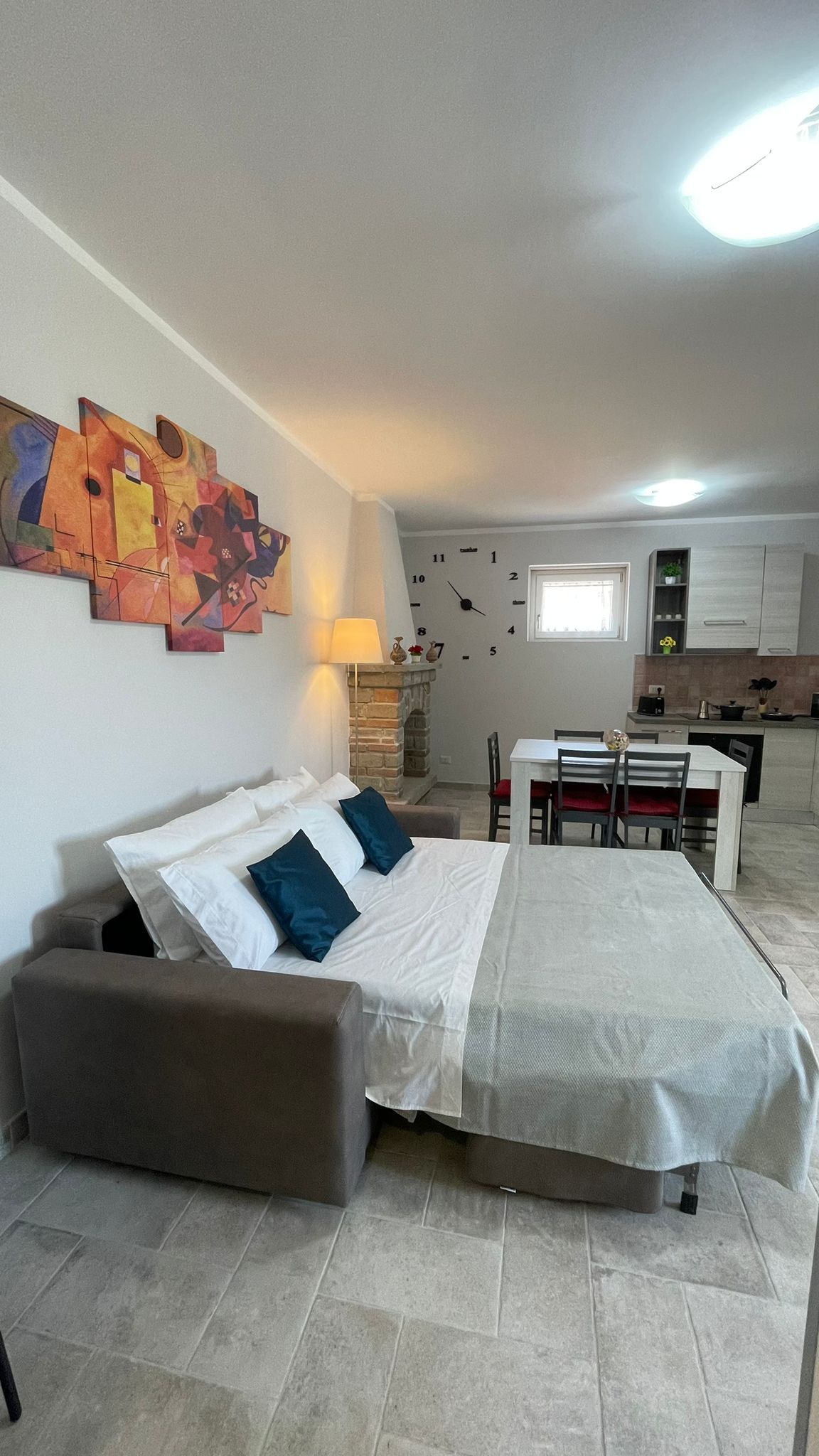 Árasán teolaí do lánúineacha, do ghrúpaí nó do theaghlaigh. Lonnaithe i riocht straitéiseach, ach cúpla céim ón stáisiún traenach (100 méadar), ó lár an bhaile, agus ó na seirbhísí go léir. Tá an Róimh nó Viterbo inrochtana go héasca ar an traein, mar aon le hAerfort Fiumicino. Is é an réiteach foirfe é dóibh siúd ar mian leo fanacht ar shiúl ó chíor thuathail na Róimhe ach go bhfuil sé áisiúil cuairt a thabhairt air. Tá tacsaithe agus busanna ar fáil ón stáisiún chun dul timpeall an bhaile agus na gceantar in aice láimhe. 2ú hurlár, gan ardaitheoir.