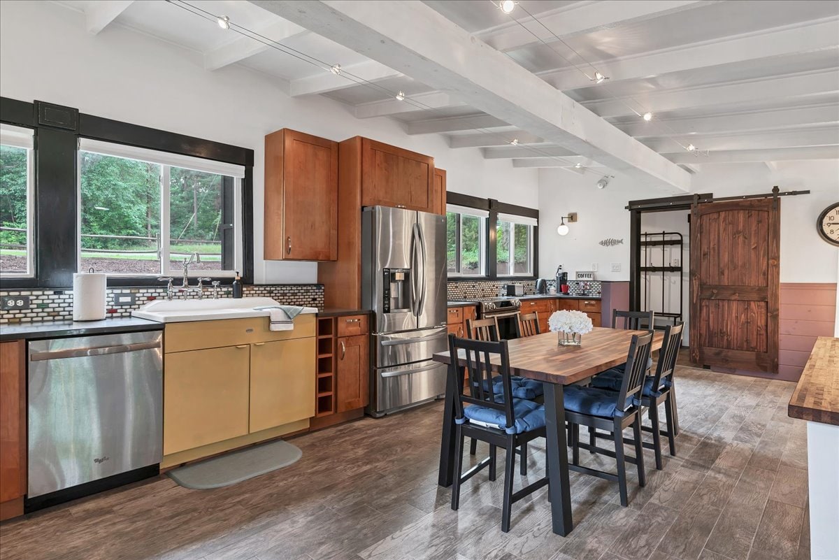 Fáilte chuig ár dteach feirme gleoite atá neadaithe laistigh d'Fhoraois Náisiúnta Uwharrie iontach! Tá an seod seo atá athchóirithe go hiomlán suite ar réadmhaoin fhairsing 44 acra, ag tairiscint saoire shuaimhneach. Le 3 sheomra leapa teolaí, freastalaíonn ár dteach feirme go compordach ar theaghlaigh agus ar ghrúpaí beaga atá ag lorg tearmainn shuaimhneach. Tá an taobh istigh deartha go tuisceanach, ina bhfuil saoráidí nua - aimseartha agus draíocht thuathúil a chumascann gan stró. Cinntíonn trí theilifíseán chliste, agus idirlíon snáithín go bhfanfaidh tú ceangailte. Leaba luascáin, conair fánaíochta!
