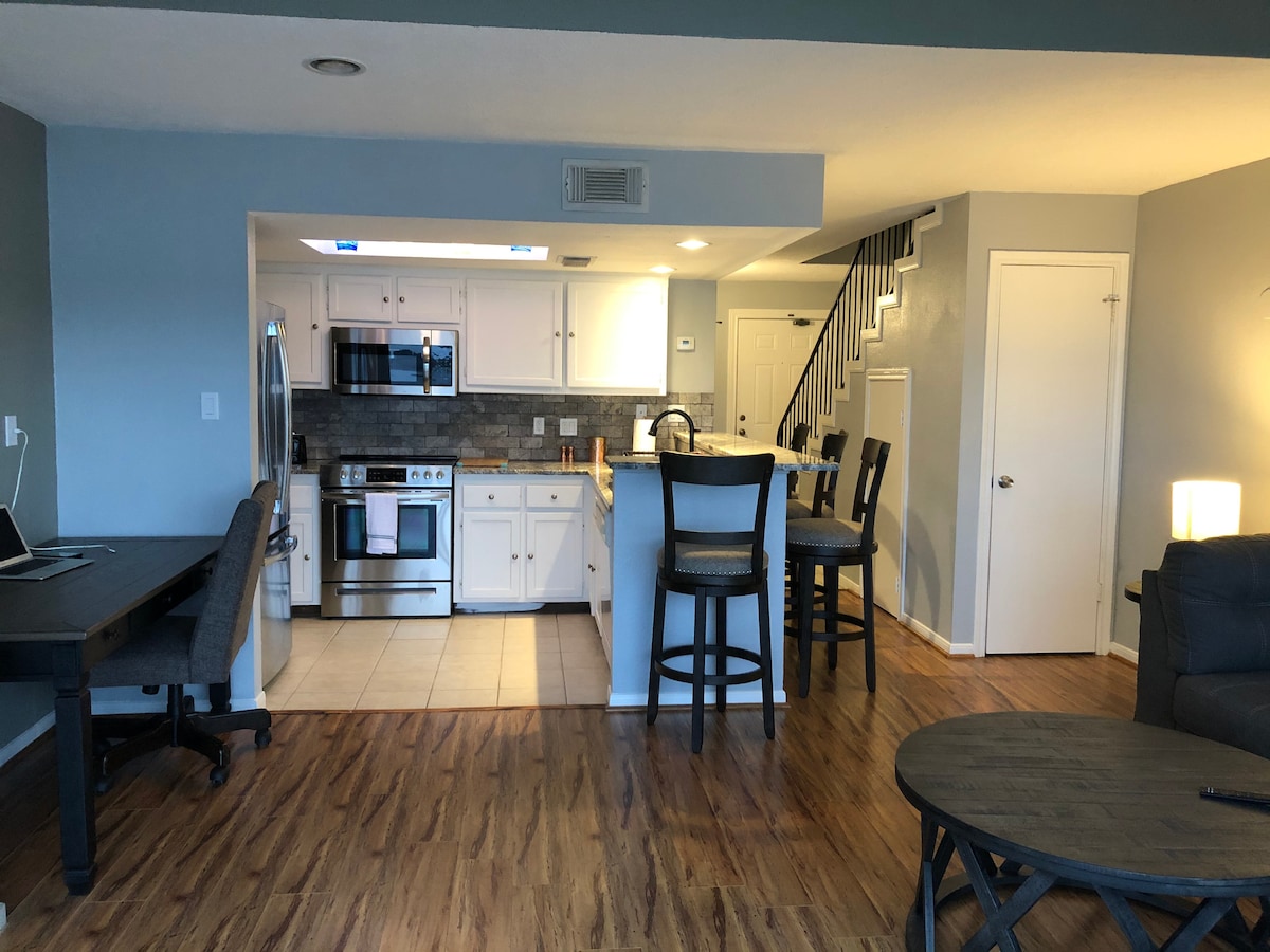 Faigh blaiseadh de luí gréine álainn ar an loch!! 1ú hurlár w/gach saoráid, 1 seomra leapa (banríon), & seomra suí w/tolg codlata (banríon). Rochtain thapa ar linn snámha & loch. Uirlisí cócaireachta cistine, miasa, raon, cuisneoir, micreathonnán & miasniteoir. Cithfholcadán & tobán, meaisín níocháin & triomadóir. Rochtain ar chlub aclaíochta & raicéid, club luamh & gríoscán, agus seoladh bád príobháideach. Páirceáil gar don doras. Iascaireacht, galf, bádóireacht, leadóg, snámh, cosáin siúil agus gar d'Fhoraois Náisiúnta Sam Houston.