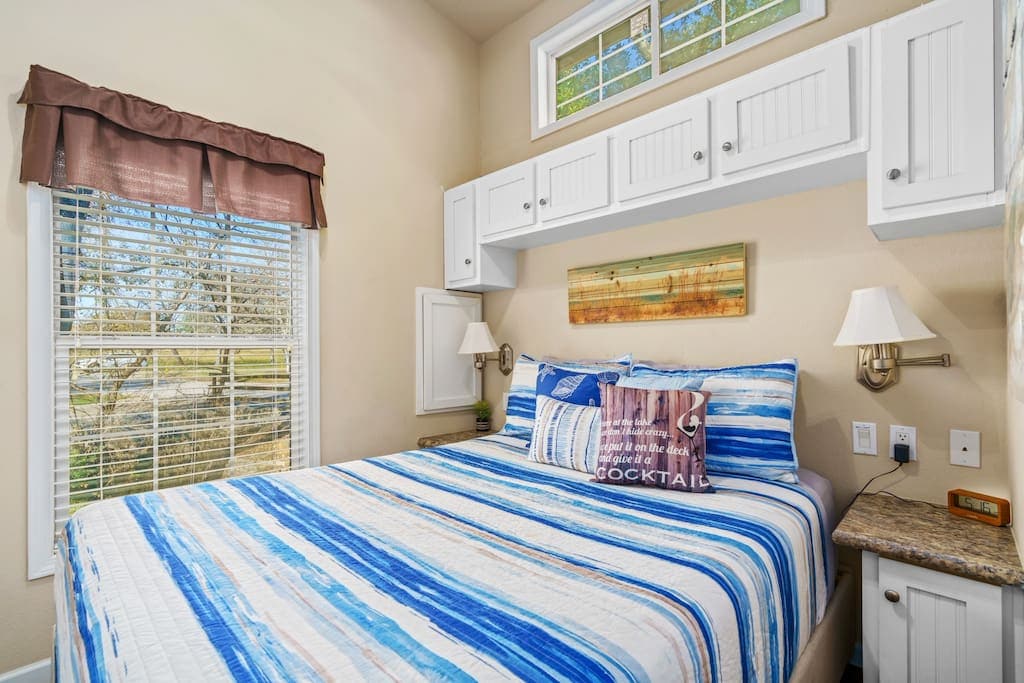 ** ANOIS W/ TOBÁN TE ** Tá simplíocht agus scíth ár dteach beag bídeach 600 Sq Ft den scoth chomh uathúil agus chomh fionnuar sin. Tá áit chodlata do 5 dhuine sa teach beag bídeach ina bhfuil leaba ar mhéid an Rí sa phríomhsheomra leapa. Tolg NUA do Bhanríon tarraingthe amach sa seomra suí, chomh maith le cathaoireacha cúpla a tharraingt amach le haghaidh seomra breise. Tá an chistin bheag bhídeach lánfheistithe foirfe chun do bhéilí simplí, gourmet a fhuáil. Tá an Lantana neadaithe díreach in aice le páirc oscailte, limistéar coillteach, agus in aice lenár lochán stocáilte.