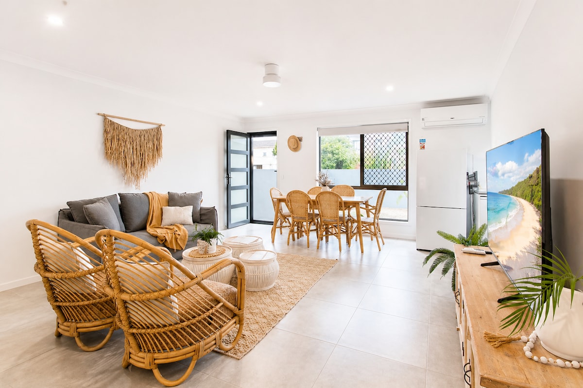 Fáilte chuig do shaoire ghearr ar Chósta na Gréine! Tá an árasán dhá urlár 3 sheomra leapa athchóirithe seo 50m ó Thrá Buddina. Tá sé deartha le haghaidh compord ó cheann ceann na bliana, tá aerchóiriú ann sa seomra suí agus sa phríomhsheomra leapa agus tá gaothráin síleála ar fud an áit chun fanacht compordach a chinntiú. Cibé acu an bhfuil tú anseo le haghaidh saoire teaghlaigh, turas surfála, nó chun do scíth a ligean, is breá leat an suíomh den scoth—gar do shiúlóidí cósta, Pt Cartwright, caiféanna. Kawana Shoppingworld minutes away & Mooloolaba Esplanade a short drive, everything you need is on your fingertips.