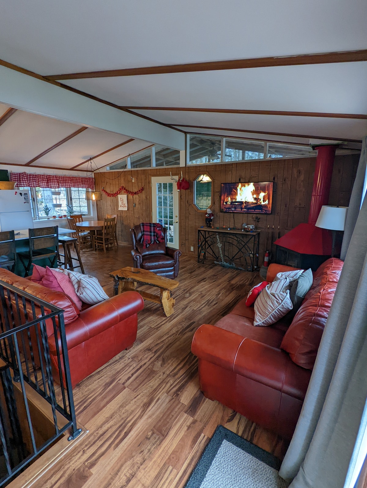 Tá síocháin agus scíth ag fanacht ag an gcábán locha nua - athchóirithe seo ina dtagann saoráidí nua - aimseartha le chéile le simplíocht Lochlannach. Le 150’ de lochanna príobháideacha ar Loch Goose, is é an saoire fhoirfe é do lánúineacha, do theaghlaigh bheaga, nó do dhíograiseoirí lasmuigh. Tar éis lá ag baint taitneamh as an loch, caith do thráthnónta ag éisteacht le taifid in aice leis an teallach, nó bain sult as tine chnámh agus tú ag féachaint ar luí na gréine agus tú ag róstadh S'amores. Níl ach 1 uair an chloig ó na Cathracha Cúplacha.