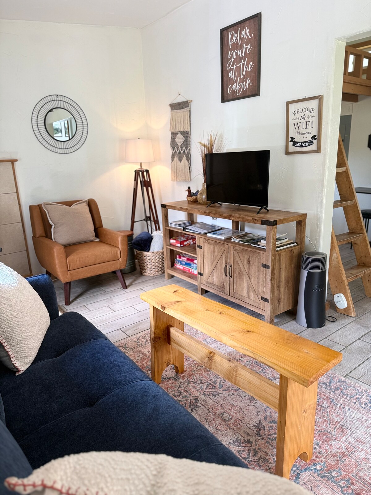 Welcome to The Rustic Retreat This rustic cabin housed a family of 5 the first 4 years of developing the property that we continue working on. This space has a fully functioning kitchen, one private bedroom,and a twin bed in the loft. The bathroom is a European style wet bath with plenty of space to shower. We are situated in a prime location minutes to town on 5 acres. The tiny house and main house are roughly 100 feet apart and surrounded by tall trees.
