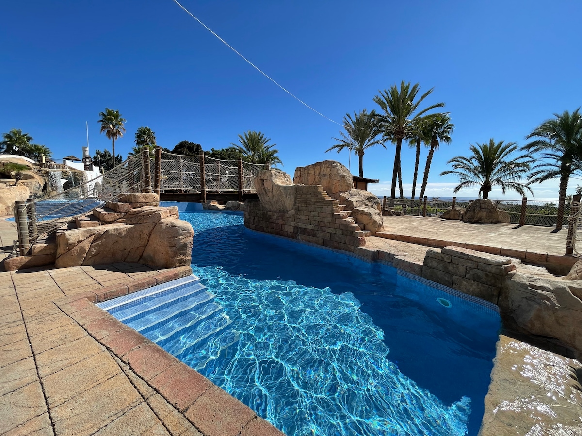 Radhairc iontacha, bonn rothaíochta, dóire millíní, linn snámha!