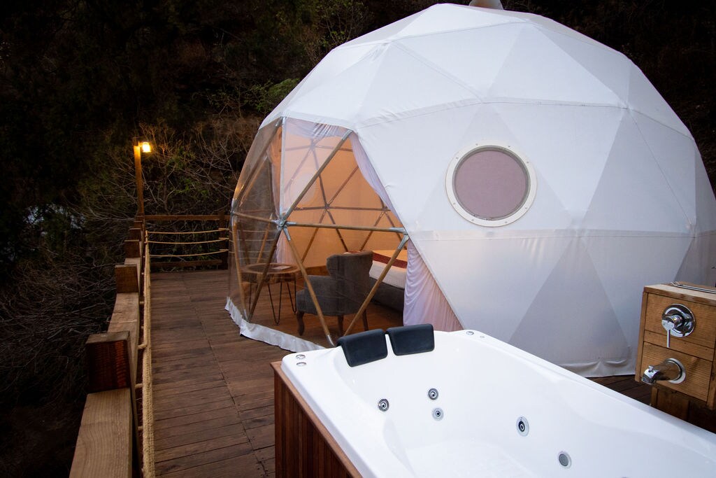 Faigh amach as go léir agus codail i gcocún cré a bhfuil díon spéir air. Is cocún é an cruinneachán cré atá timpeall ort agus a ligeann duit breathnú ar na réaltaí agus ar an spéir trína fhuinneog níos mó - a shíleáil spéirléas. Tá sé i lár an dúlra, amach ó gach rud. Tá ardán ag El Domo taobh amuigh le cistin, cithfholcadán le huisce te agus seomra folctha tirim. Tá Wi - Fi maith satailíte againn a chlúdaíonn cruinneachán agus ardán.