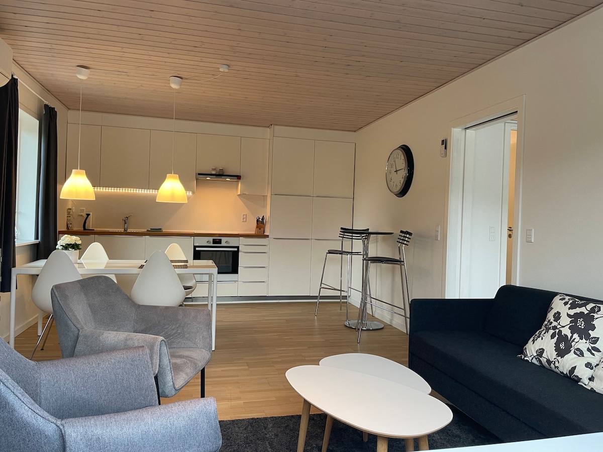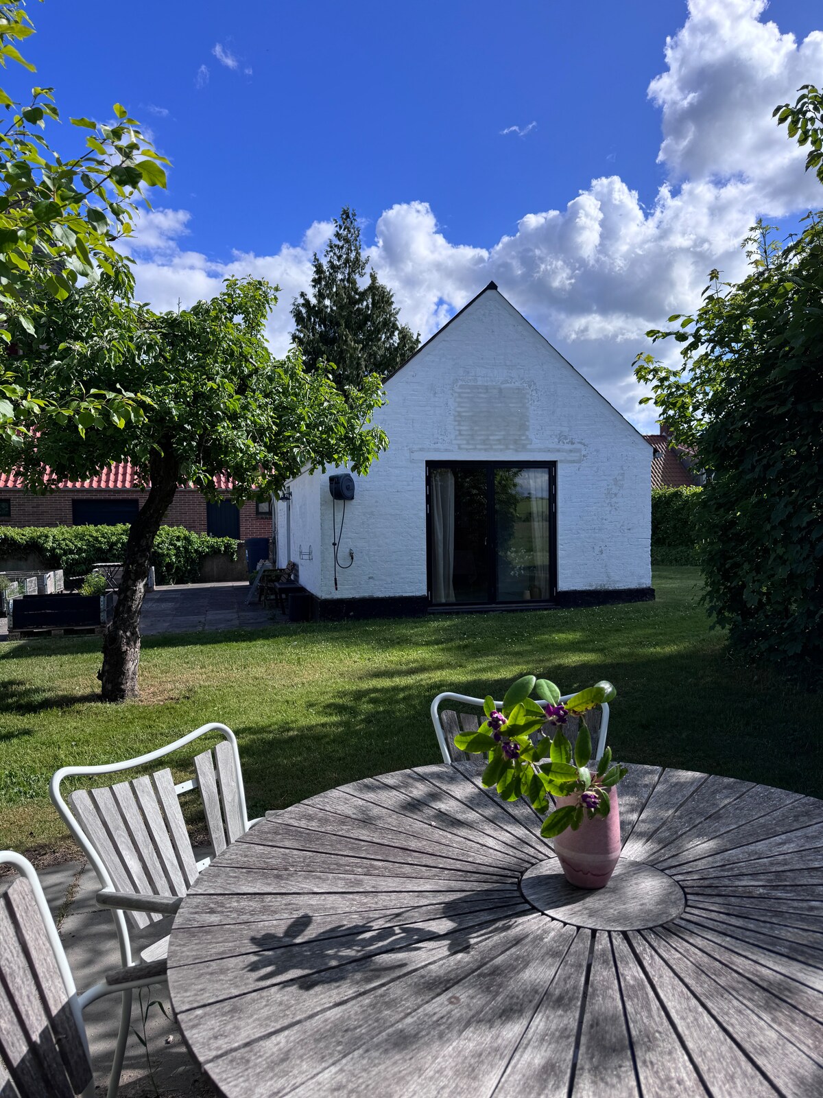 Tá an t - árasán suite ag an taobh thoir de theach feirme álainn ó 1874 le gairdín mór agus áiteanna lasmuigh. Tá bealach isteach príobháideach agus ardán os comhair an deiscirt, chomh maith le seomra folctha agus cistin ina bhfuil cuisneoir - iad ar fad ag breathnú amach ar an ngairdín. Tá páirceáil ar fáil sa chlós timpeall ar sheanchrann mór aoil. Tá an t - árasán suite go lárnach i dtreo na cathrach agus an dúlra araon - gan ach 3 km chuig iascaireacht agus siúl ag Trá Løgten, agus thart ar 20 nóiméad sa charr chuig Aarhus agus Mols Bjerge.