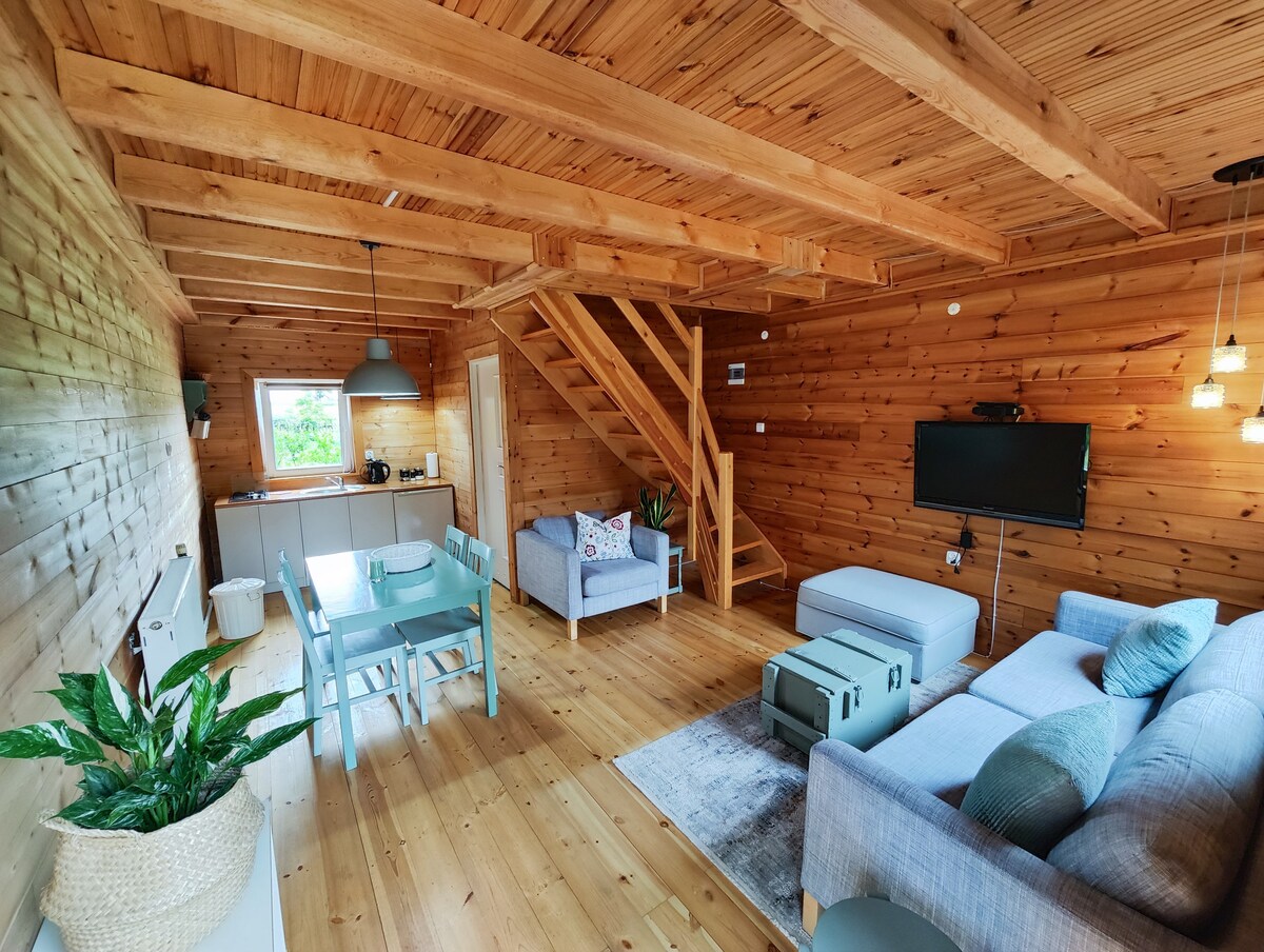 Leath-theach atá deartha go grámhar le do bhealach isteach féin agus do limistéar gairdín féin – suite go ciúin agus an dúlra thart timpeall air. Ar thart ar 70 m², gheobhaidh tú dhá sheomra leapa ina bhfuil leapacha dúbailte, seomra folctha ina bhfuil tobán agus cithfholcadán, agus seomra suí teolaí ina bhfuil áit itheacháin. Tá an chistin nua-aimseartha feistithe go hiomlán le hoigheann, miasniteoir agus cuisneoir – foirfe do lánúineacha, do theaghlaigh nó do dhaoine atá ag lorg síocháin.