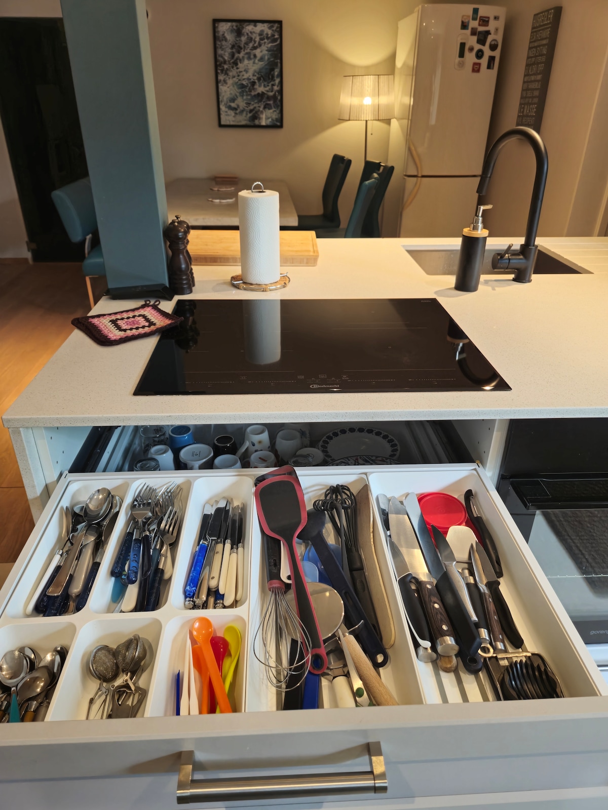 Bain sult as an ngairdín, an t - oráiste, an teach súgartha agus an bosca gainimh. Siúl 80 méadar síos go dtí na carraigeacha agus an limistéar snámha, siúil 400 méadar agus gheobhaidh tú mionghalf, trá, freesbegolf agus cúirt eitpheile gainimh. Muiríne agus bialann 1 km ar shiúl. Conairí fánaíochta Tá 1 leaba dhúbailte, 1 leaba thoilg dhúbailte, tocht breise le haghaidh leaba thoilg sa vardrús sa seomra níocháin/seomra stórála. 1 leaba shingil, 1 leaba linbh agus 1 leaba taistil do pháistí. Tá tuáillí, línéadach leapa, caife, tae, siúcra, spíosraí, tuáillí páipéir, páipéar leithris, ceirtíní fliucha agus gallúnacha éagsúla san árasán agus is féidir iad a úsáid.