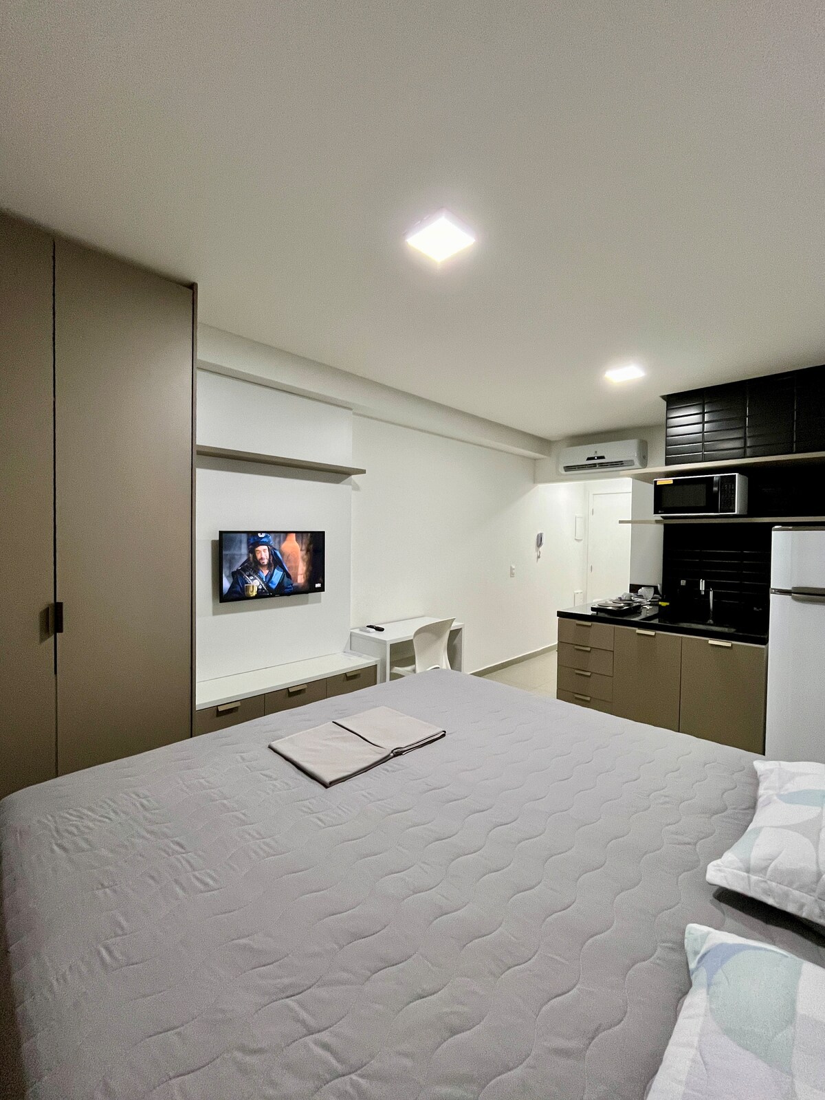 Árasán stiúideo iomlán ar an 1ú hurlár, foirfe do São João, don obair nó don turas! 🏠 Díreach 2 km ó Estação das Artes, tá neamhspleáchas iomlán ag an spás. 📍 Saoráidí: ✅ Leaba dhúbailte + Teilifís 📺 ✅ Cistin feistithe: cuisneoir, barr cócaireachta gáis, citeal leictreach agus déantóir ceapairí 🍳 ✅ Tá uirlisí san áireamh mar áis duit. Suíomh: Gach rud in aice láimhe! 👣 Bácúis, beáir sneaiceanna, cógaslanna agus ionaid aclaíochta thart. Compord agus áisiúlacht le linn d'fhanachta in Mossoró! ✨