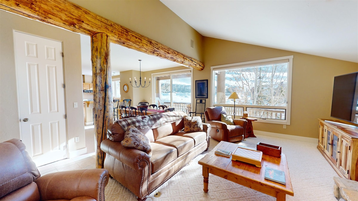 Radhairc mhaorga sléibhe, oiriúnach do theaghlaigh, compordach agus áisiúil. Teach baile mór idéalach ar an tobair do gach duine a bhfuil dúil acu san aer agus rochtain éasca acu ar an sciáil, ar an tsiúlóireacht, ar an rothaíocht agus ar an "baile sciála iontach deireanach i Meiriceá!" Just a siúlóid 4 nóiméad go Westwall Chairlift agus tointeálaí baile saor in aisce! Páirceáil sa gharáiste príobháideach agus ná húsáid do charr riamh arís (páirceáil ar fáil do suas le 2 charr). Earrach, an samhradh, an fómhar nó an geimhreadh, is cinnte go mbeidh tearmann sléibhe speisialta agat agus tú ag fanacht inár dteach baile mór!
