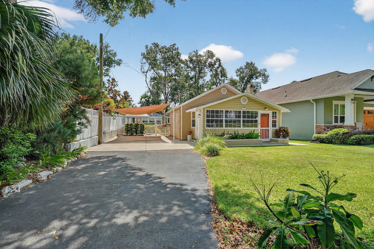Teachín teolaí 1/1 - foirgneamh neamhspleách, + cistin bhricfeasta deas, bia, & seomra suí, póirse iontach scagtha. 4 nóiméad sa charr ó Renninger's, 5 nóiméad ó Limistéar Halla na Cathrach Mount Dora, áit a bhfaighidh tú siopaí, bialanna, seandachtaí, músaeim ealaíne, dánlanna, muiríne, páirceanna, & go leor gníomhaíochtaí !* 32 nóiméad/ Universal Studios & Island of Adventure, 43/ Magic Kingdom, 40 min/ Orlando Intl. Aerfort, 36 nóiméad/Aerfort Sanford - Orl, 18 nóiméad/Foinse na Carraige, 48 nóiméad/Silver Glenn Spring & i bhfad níos mó!