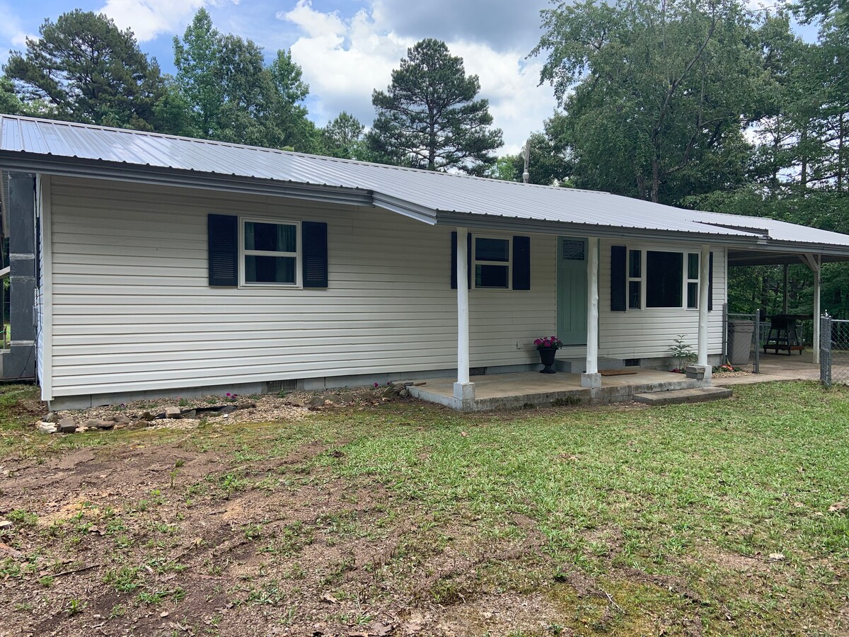 Cábán Beag suite ar 10 n - acra le radhairc iontacha! Dúisigh agus breathnaigh amach thar shléibhte Ouachita! Téigh amach ar an deic mhór agus bain sult as cupán te caife agus dúlra! Tá an lochta snoite agus tá tocht na Banríona ann. Tá cistin iomlán (teach beag bídeach) againn ina bhfuil potaí agus pannaí nó gríoscán má roghnaíonn tú cócaireacht a dhéanamh. Seomra Folctha gleoite le cithfholcadán mór. Triomadóir buille i comh - aireachta. Gan chábla (díphlugáil agus bain sult as an dúlra!) Ach tá seinnteoir DVD againn agus is gnách go mbreathnaímid ar an teilifís ag baint úsáid as ár gcorda tintrí ar ár iPhones!