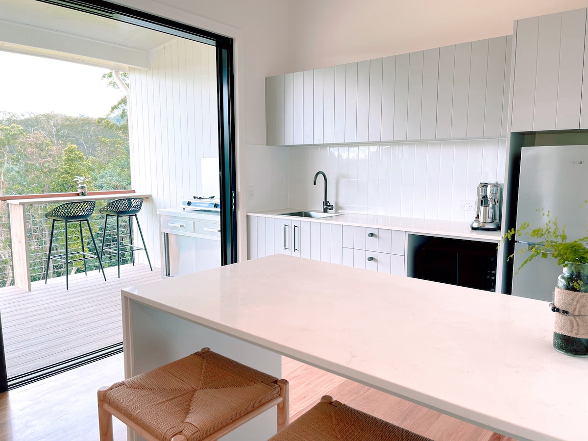 Suite ar imeall Chósta Sunshine ag breathnú amach ar an aigéan ó Mt Coolum go dtí Caloundra ó thuaidh, tá tú timpeallaithe ag cnoic dhroimneacha agus 166 acra d'fhéarach glas méith ina ndéantar eallach wagyu folaíochta a shaothrú. Deartha go hailtireach chun gaotha na farraige a ghabháil ó cheann ceann na bliana, bain sult as Tearmann fairsing le radhairc 360 céim, áit a mbíonn na hoícheanta fionnuar i gcónaí ag an airde seo. Cuimsíonn an ráta in aghaidh na hoíche 2 Dhuine Fhásta (áit chodlata do cheathrar) agus adhmad tine gach oíche. Tá táille peataí ar leithligh ann as glantachán sláinteachais breise.