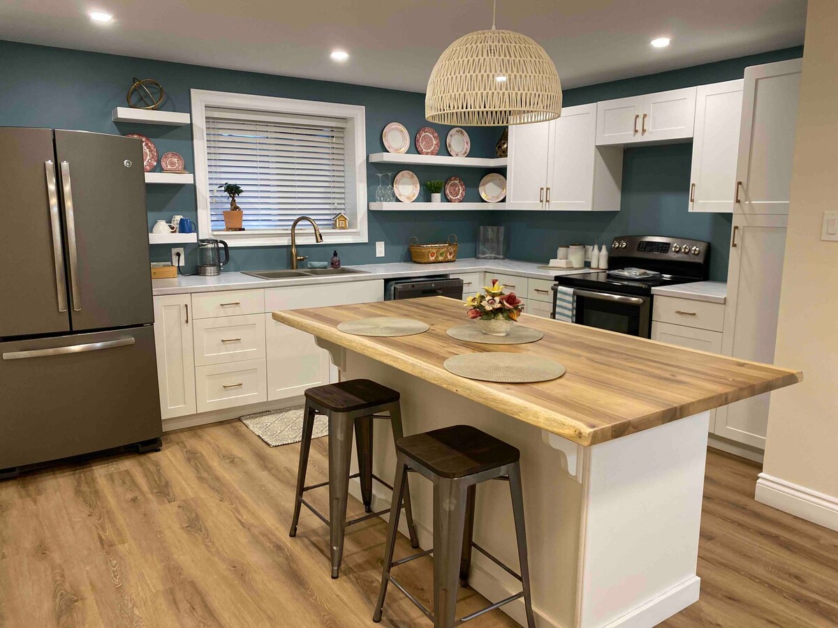 Discover Rose Retreat — a clean, comfortable and stylish 2-bedroom pondside escape for up to 4 guests. Just 15 minutes from downtown St. John’s, the airport, and Signal Hill, enjoy water views from every window, cozy movie nights in your private theatre room, and a deep soaker tub to unwind after exploring nearby beaches and trails. Featuring king and queen bedrooms, an office-ready workspace, and a well-equipped kitchenette. Optional: 44-jet hot tub available for added relaxation.