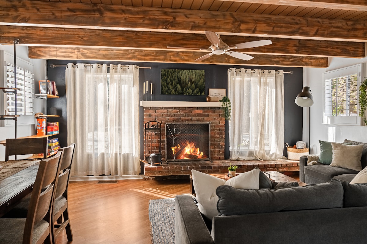 Cábán teolaí Wrightwood atá oiriúnach do theaghlaigh agus é lán le spraoi! Taitneoidh stua, bréagáin agus mionchlós súgartha Pac - Man go mór le páistí. Is féidir le daoine fásta taitneamh a bhaint as líneáil zip, fánaíocht, rothaíocht sléibhe, agus sciáil ag Mountain High - díreach 10 nóiméad ar shiúl! Achar siúil chuig bialanna gleoite i lár na cathrach. Codlaíonn sé nó sí 5: - Seomra 1: Thíos staighre. Leaba ar mhéid na Banríona w/deasc oibre - Seomra 2: Thuas staighre, leaba rímhéide, aonad acra fuinneoige - Seomra 3: Thuas staighre, leaba dhá mhéid, rochtain ar bhalcóin, deasc oibre (gan doras príobháideachta) Nóta * tá an staighre géar agus cúng*