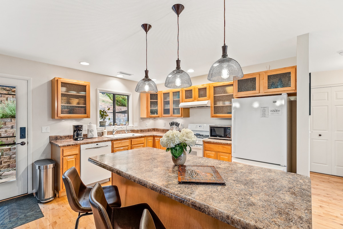 Fáilte go dtí do Thearmann Cozy Pines! 🌲 Téigh ar shaoire chuig ár n-áit shuaimhneach saoire ar an sliabh atá suite i measc phéineanna Ponderosa i gcomharsanacht chiúin Mountainaire. Níl ár dteach ach 10 nóiméad ó lár Flagstaff, agus is iontach é mar bhunáit do d'eachtraí in Arizona. An rud is fearr ar fad? Fanann madraí SAOR IN AISCE! Beidh bhur madraí an-tógtha le bheith ag fánaíocht sa chúlchlós mór atá fálaithe go hiomlán agus sibh féin ag ligean do scíthe cois teallaigh. Bain sult as Wi-Fi tapa, cistin nuashonraithe, sorn cluthar adhmaid agus aer úr sléibhe!