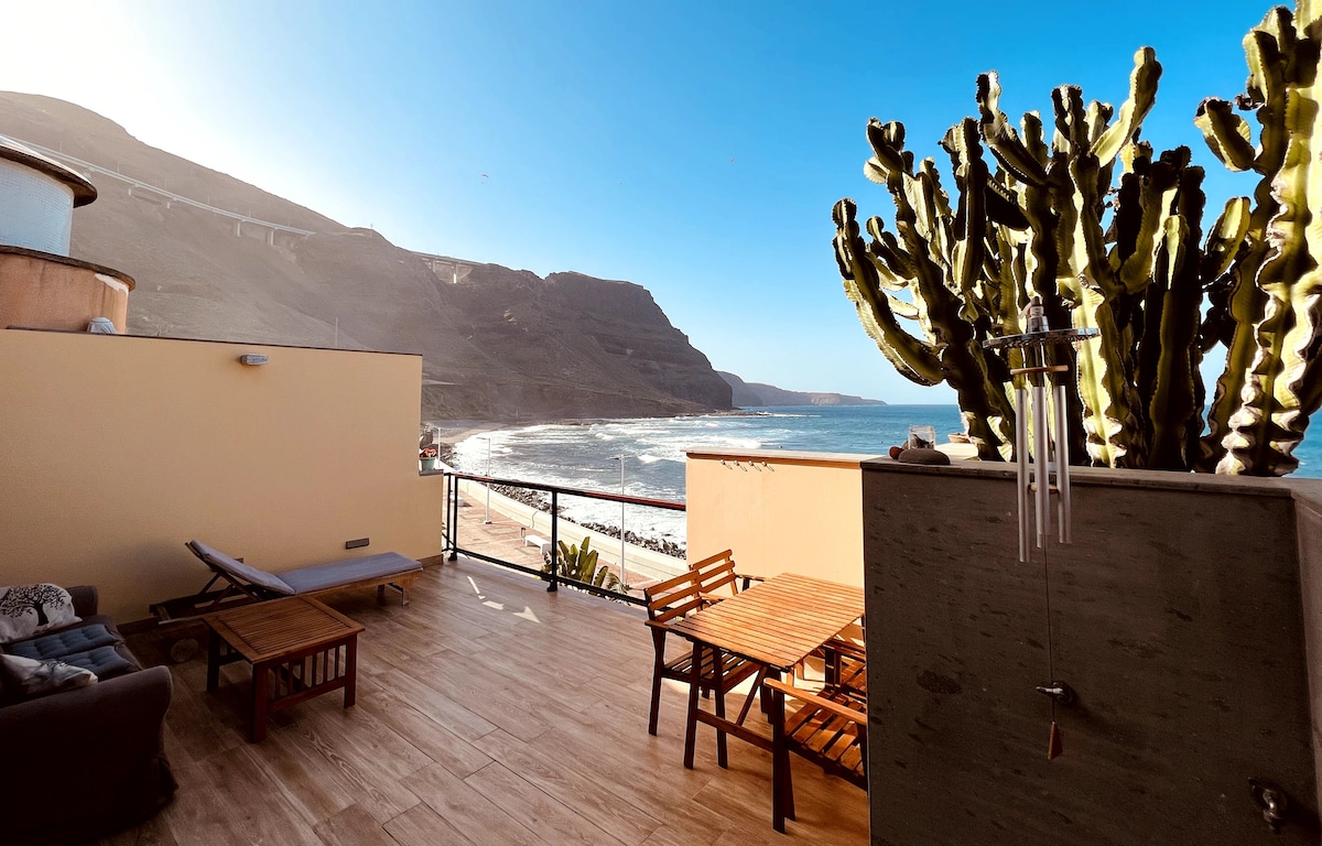 Árasán 120m cearnach GRAN CANARIA 🏝️"StrawberryBeach go deo ", atá suite ar an aill, i gceantar sábháilte ciúin! San oíche is féidir leat soilse na cathrach a fheiceáil. Is maith linn a bheith in ann na faoileáin agus na albatrosses a fheiceáil i lár an dúlra agus breathnú ar an radharcra gach lá Sa cheantar tá roinnt bialanna. Ar laethanta toinne is féidir leat surfálaithe a fheiceáil ag cleachtadh. Tá sé an - ghar don ascaill a nascann roinnt tránna de Telde.
