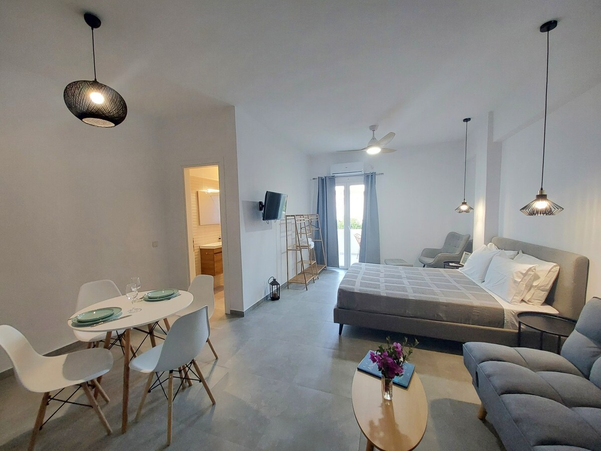 Faigh blaiseadh de bhunbhrí oileán na Gréige atá ina chónaí in árasán úrnua, an - teolaí agus compordach, 1 seomra leapa (a chodlaíonn suas le 4 i 1 seomra leapa agus 2 leaba thoilg ionsuite). Suite díreach laistigh d'achar siúil (300m) ó Chalafort bríomhar Gavrio, beidh tú chomh gar sin don bhaile calafoirt atá lán le bialanna, siopaí, caiféanna, bácúis, ollmhargaí, agus fós i gcomharsanacht shuaimhneach ina bhfuil radharc ar an bhfarraige. Níl trá bheag ach 100m ar shiúl agus laistigh de charr 5', na tránna is mó a bhfuil tóir orthu ar an oileán.