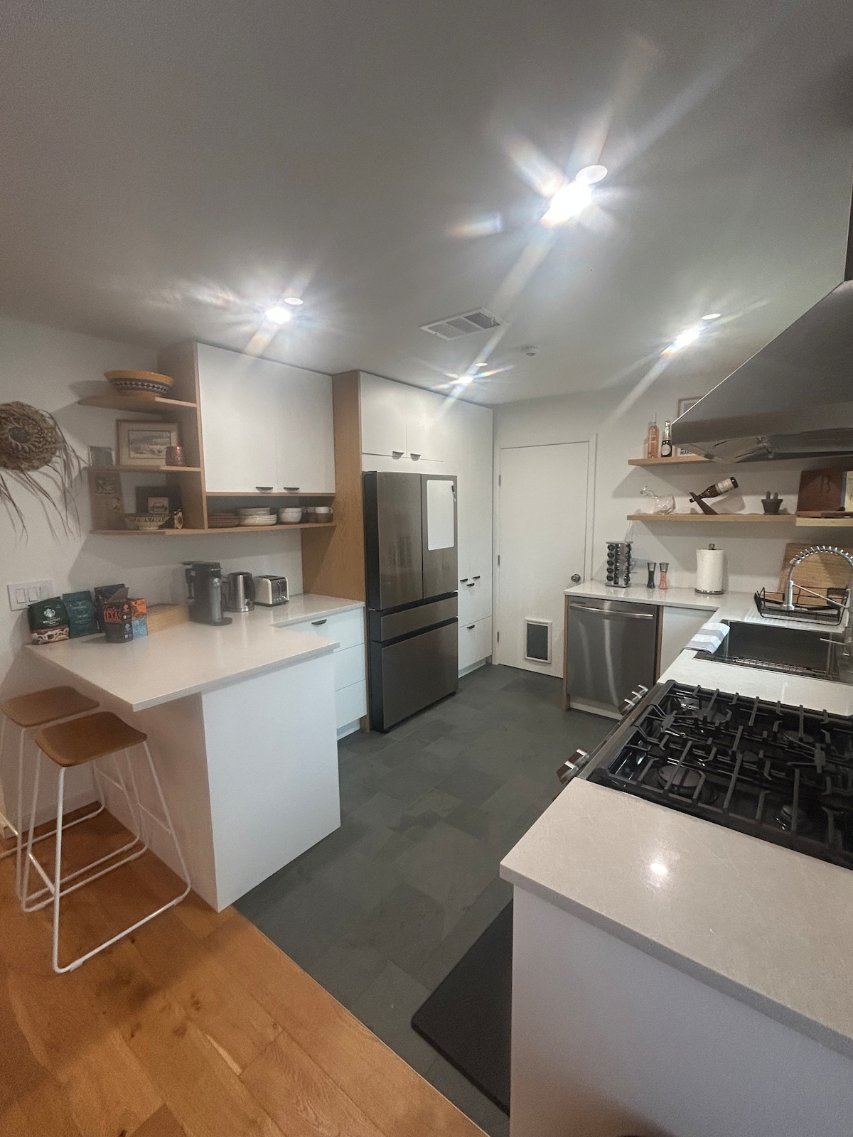 Teach nua-athchóirithe i mbóthar cúlbhealaigh ciúin 19 nóiméad ó lár na cathrach. Tá seomra folctha agus seomra éadaigh i ngach seomra leapa. Tá leaba Rí California sa mháistirseomra leapa agus tá leaba Bhanríon sa dara seomra leapa. Tá an dá sheomra leapa ar an dara hurlár. Tá leaba rollála againn sa gharáiste chomh maith le tolg mór is féidir a úsáid don 5ú agus don 6ú aoi. Ní cheadaítear ach aíonna. Gan cuairteoirí breise, cóisirí nó imeachtaí. D'fhéadfadh cealú gan aisíocaíocht a bheith mar thoradh ar sháruithe. Is iad 10pm go 8am na huaireanta ciúnais sa chomharsanacht.