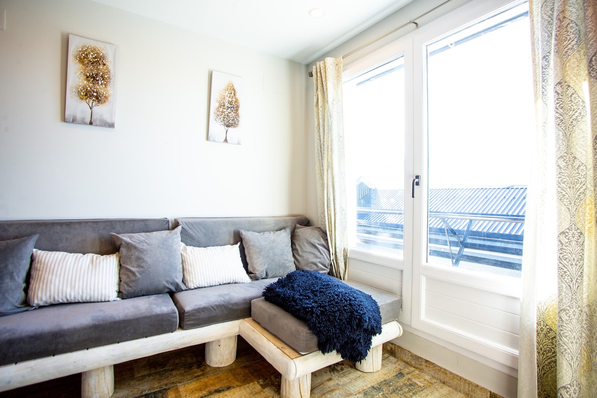 Apartamento Iontach ag breathnú amach ar na fánaí in íseal Sierra Nevada, le Plaza de Garaje, Wifi, Netflix do 6 dhuine. Edif. Monte Gorbea, taobh thiar d'Óstán Meliá 300 m ón gcathaoir Tá an t - árasán comhdhéanta: cónaí/cistin le 1 tolg dúbailte, leaba dhúbailte, bealach isteach le leaba bhuinc 2x80cm 180cm agus seomra folctha. Garáiste san áireamh. Déantar seiceáil isteach/seiceáil amach 500 méadar ar shiúl ón áit a bhfuil an t - árasán agus i gcarr 4.5 km toisc nach bhfuil ach ciall amháin ag Sierra nevada