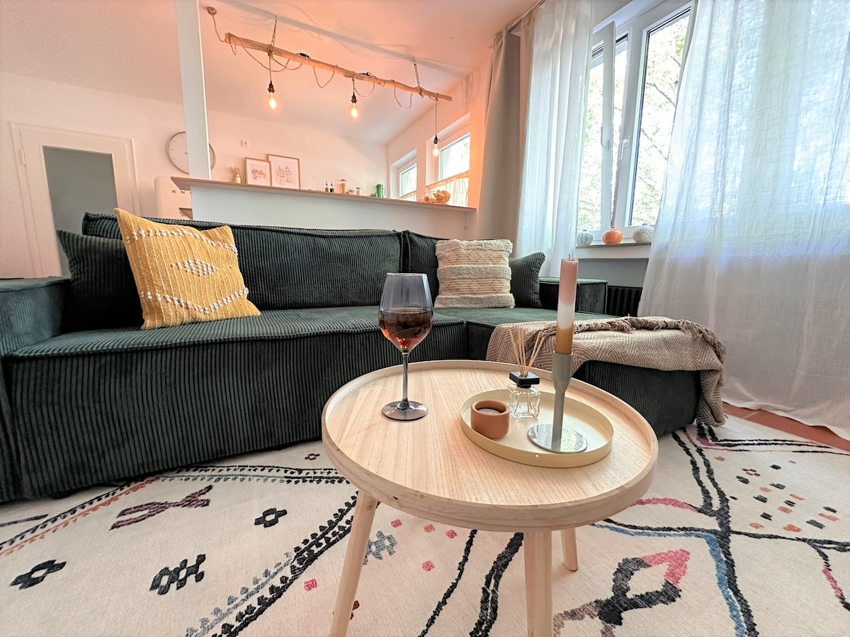Heileo, a thaistealaithe! Praghsanna Oscailte - Oifige! Tá mo árasán álainn, geal, 95sqm (1022sqft) ag fanacht leat! Tá sé iontach do thaistealaithe gnó (MESSE KÖLN) agus do thurasóirí, le haghaidh tréimhsí fanachta fadtéarmacha freisin. Mórán siopaí laistigh de 2 nóiméad ag siúl. Naisc iompair phoiblí fhoirfe le gach radharc tábhachtach agus ionad gnó laistigh de charranna an - ghearr, i gcarr nó in iompar cathrach (tram/ bus/ fobhealach). Bí ag tnúth le hárasán álainn dea - cheaptha a mhothaíonn cosúil le bheith as baile!