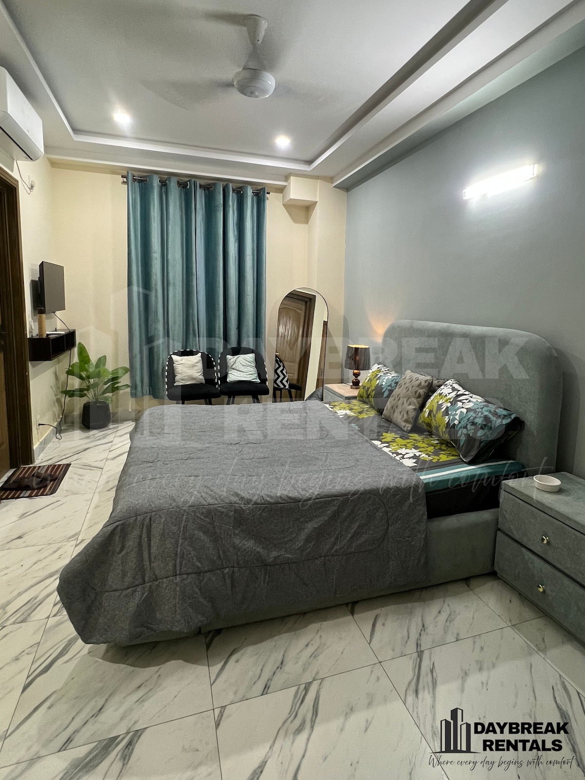 Téigh isteach in Aurora Retreat, 1BHK galánta i bpríomhshuim Islamabad. Lonnaithe i lár Islamabad, bain sult as seomra leapa fairsing, tolglann teolaí le Teilifís Chliste, cistin lánfheistithe, seomra folctha nua - aimseartha, Wi - Fi ardluais, ardaitheoir, agus páirceáil shlán. Foirfe do thaistealaithe aonair, do lánúineacha, nó do chuairteoirí gnó atá ag lorg compoird agus síochána in aice leis na bialanna agus an t - iompar is fearr. Déan áirithint anois le haghaidh fanacht den scoth, suaimhneach!
